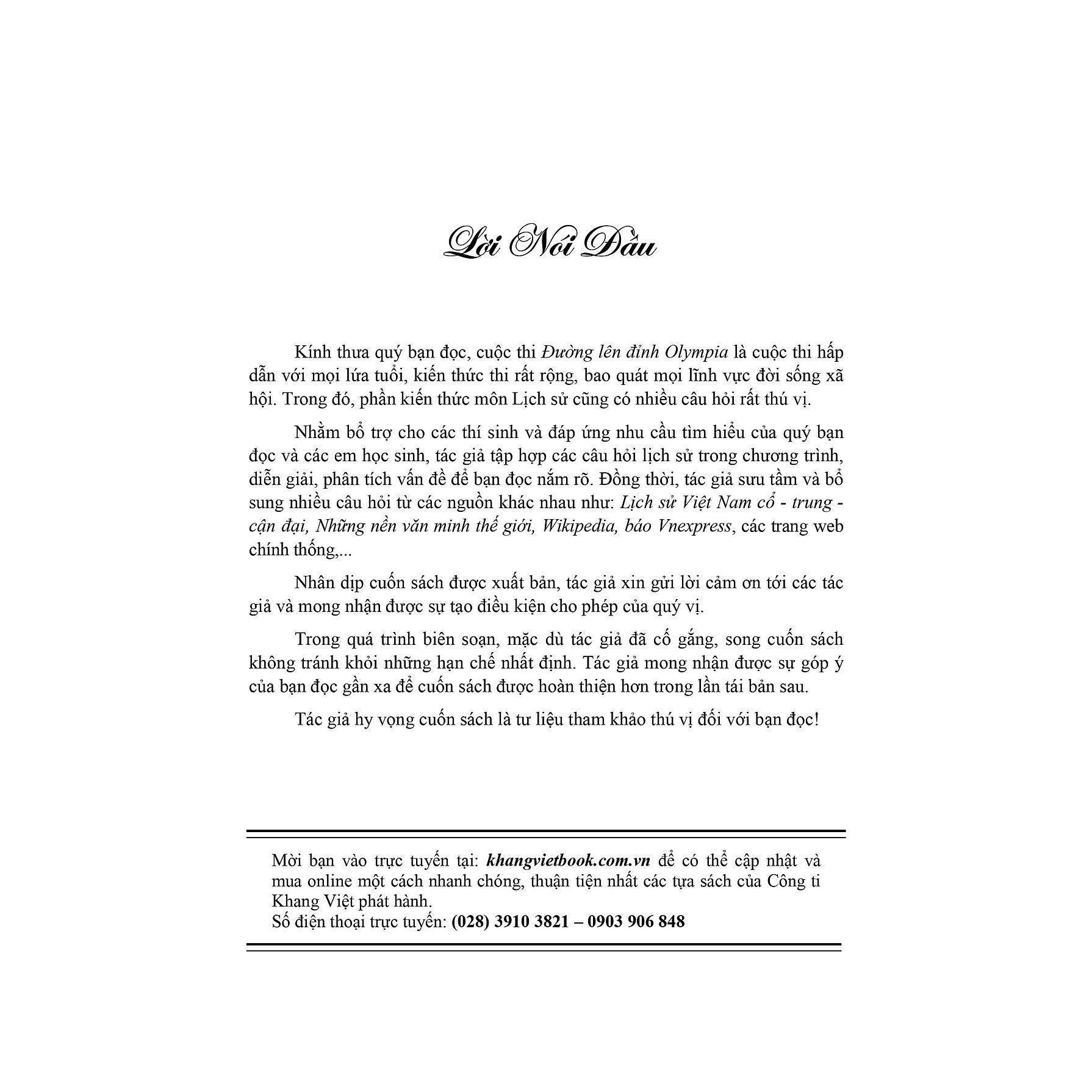 ✨Sách - Chinh Phục Đỉnh Olympia Ngân Hàng Câu Hỏi Có Đáp Án Và Giải Thích Lịch Sử - Khang Việt Book
