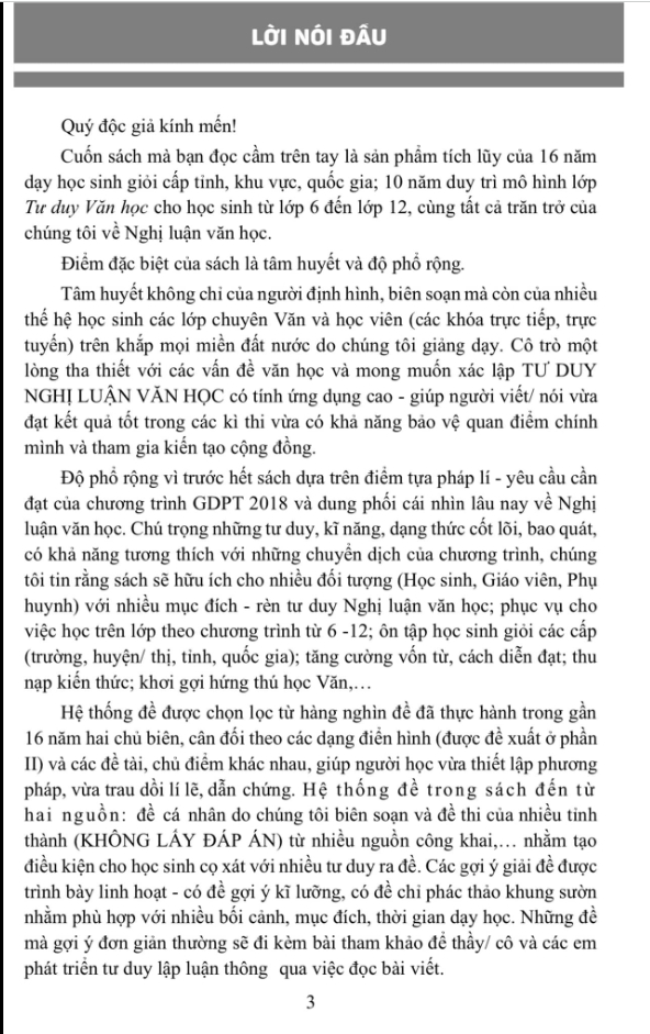 - Kĩ năng diễn đạt 4.1. Diễn đạt đúng 4.2. Diễn đạt hay PHẦN 2: CHUYÊN ĐỀ CƠ BẢN VÀ NÂNG CAO 2.1. Chuyên đề cơ bản 2.1.1. Tác phẩm trữ tình 2.1.2. Tác phẩm tự sự 2.1.3. Kí văn học 2.1.4. Văn học kịch 2.2. Chuyên đề nâng cao 2.2.1. Thơ trữ tình Việt Nam: loại hình và phát triển 2.2.2. Luân lí đạo đức trong văn học: truyền thống và hiện đại 2.2.3. Nữ quyền sinh thái: phản tư về những vấn đề xã hội 2.2.4. Tiếp nhận văn học: kiến tạo những giá trị 2.2.5. Văn học so sánh: cái nhìn đa chiều về văn học PHẦN 3: HỆ THỐNG ĐỀ THI, GỢI Ý, ĐOẠN VÀ BÀI THAM KHẢO