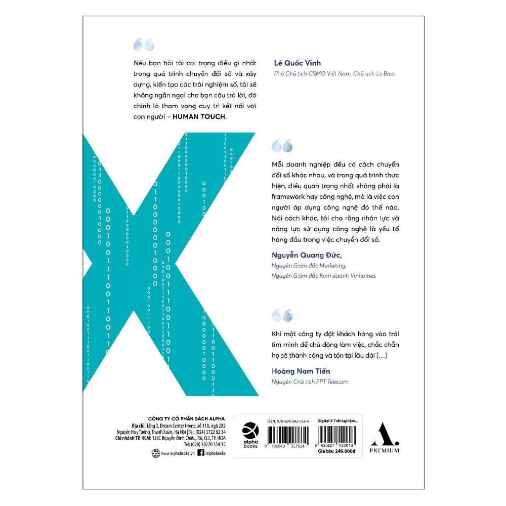 Cuốn sách "Digital X - Trải nghiệm số trong chiến lược Sales & Marketing" sẽ dẫn bạn vào hành trình khám phá mọi "ngóc ngách", khía cạnh về trải nghiệm số với bốn phần chính, cung cấp những thông tin cơ bản, thiết thực và cập nhật giúp người đọc hiểu rõ hơn về nền kinh tế trải nghiệm, cách tạo ra trải nghiệm số tốt nhất cho khách hàng, và cách áp dụng công nghệ (đặc biệt là những công nghệ tiên phong) để tối ưu hóa chiến lược sales và marketing của doanh nghiệp trong thời đại số