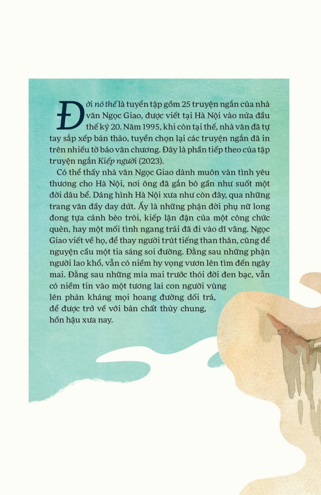 Ước mơ lớn nhất và duy nhất trong văn của Ngọc Giao, là sự thiện lương cho con người. Đó cũng là ước mơ chung của những nhà văn Việt Nam hiện đại, của từng độc giả hôm nay. Đọc Đời nó thế, để nhìn lại thoáng qua thước phim Hà Nội cũ, cũng là để khám phá thêm một nét thú vị trong bức tranh toàn cảnh văn học Việt Nam trước năm 1945.