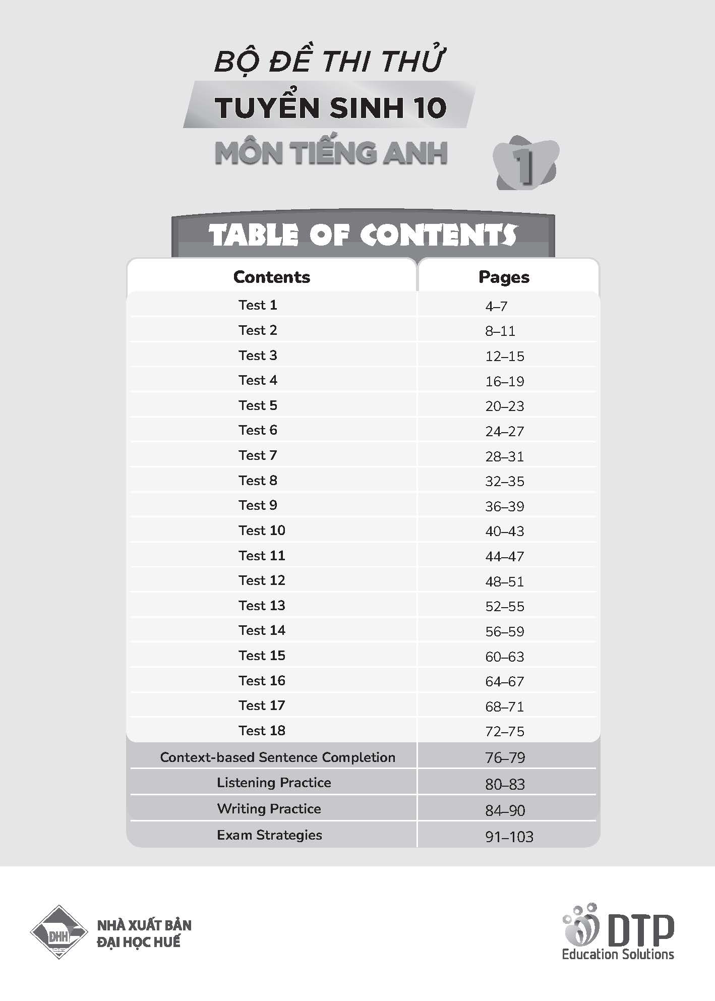 Trọn bộ ôn tập và bộ đề thi thử Tuyển sinh 10 môn Tiếng Anh bao gồm: Bộ đề thi thử tuyền sinh 10: - Trọn bộ 18 đề thi thử TUYỂN SINH LỚP 10