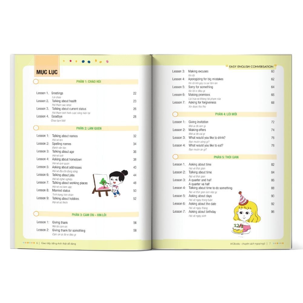 Nội dung cuốn sách: "Easy English Conversation – Giao Tiếp Tiếng Anh Thật Dễ Dàng" được thiết kế một cách khoa học và chi tiết, bao gồm các phần chính sau: PHẦN 1: Chào hỏi