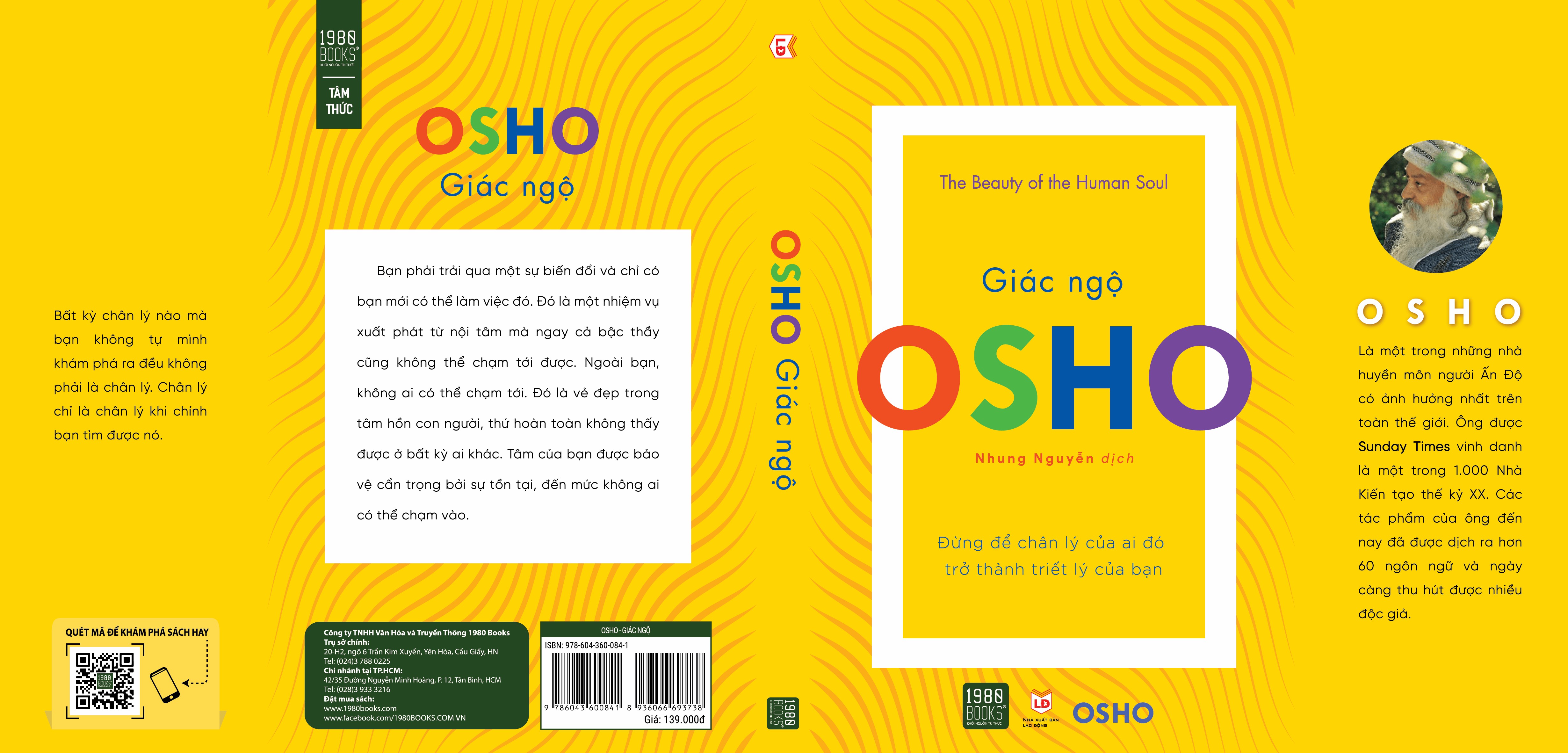 GIÁC NGỘ Trong các cuốn sách của Osho đều được tạo ra từ những cuộc nói chuyện rộng rãi của ông. Khi chia sẻ những câu chuyện từ cuộc sống của chính mình, mang đến những hiểu biết mới về những câu chuyện ngụ ngôn cũ và thách thức người nghe kiểm tra niềm tin có ý thức và vô thức của chính họ, Osho bắt đầu tạo ra một "câu chuyện" mới và chân thực hơn về những gì con người chúng ta đang làm trên hành tinh này, và tại sao chúng ta ở đây. “Giác ngộ” như bản tuyên ngôn về món quà vô giá của cá nhân, về cả tự do và trách nhiệm đi kèm với cuộc sống sống theo ánh sáng của riêng bạn, không có những khái niệm và tư tưởng cố định do người khác đưa ra - cho dù đó là cha mẹ, giáo viên, linh mục, hoặc chính trị gia. Thách thức là không có gì là đương nhiên và can đảm để bước vào cái không biết mà không có ý tưởng về những gì sẽ xảy ra, với sự sáng tạo, nhạy cảm và nhận thức tuyệt vời, nhưng không có hệ tư tưởng cố định. Osho nói: "Bạn phải trải qua một sự biến đổi và điều đó chỉ bạn mới có thể làm được. Ngoại trừ bạn, không ai có thể đến được đó. Và đây là vẻ đẹp của tâm hồn con người, điều đó hoàn toàn không có ở bất kỳ ai. Trung tâm của bạn được bảo vệ rất nhiều bởi sự tồn tại mà thậm chí không ai có thể chạm vào nó." Nếu thông điệp chạm đến bạn bằng cách nào đó, dù chỉ một ít, cũng đủ rồi – bởi vì chỉ một đốm lửa nhỏ cũng đủ để thiêu cháy khu rừng. Cả cuộc đời bạn có thể bùng cháy chỉ vì một đốm lửa nhỏ chạm vào bạn. Không có ngôn ngữ nào tồn tại trên thế giới được tạo ra bởi những người giác ngộ, dành cho người giác ngộ và cho mục đích giác ngộ. Đó chính là trở ngại; đó là lý do tại sao họ đều cảm thấy rằng sự thật không thể được diễn đạt. Không có ngôn ngữ nào được tạo ra bởi những người nắm bắt chân lý. Trên thực tế, chưa từng có nhiều người hiểu biết đến mức cần phải tạo ra một loại ngôn ngữ. Việc ai đó giác ngộ là điều hiếm gặp, chỉ thi thoảng mới xảy ra. Trong thời điểm mà những ý tưởng cấp tiến về hầu hết mọi vấn đề và chủ đề dường như trở thành mốt bởi vì tâm trí con người có xu hướng điên cuồng xoay chuyển như một con lắc từ thái cực này sang thái cực khác, thật sảng khoái khi nghe hoặc đọc được tiếng nói của lý trí. Trong cuốn sách này, Osho đã phân tích chi tiết cách tâm trí của chúng ta bị điều kiện bởi xu hướng cực đoan, tại sao chúng ta lại mong mỏi các nhà lãnh đạo giải cứu chúng ta hoặc đưa chúng ta trở lại những ngày xưa tươi đẹp. -Thông tin tác giả: Osho (1931-1990) Là một đạo sư người Ấn được hàng triệu người trên thế giới tìm đọc. Giáo lý của Osho đậm chất phương Đông, nhấn mạnh tới tầm quan trọng của thiền và sự tỉnh thức, từ đó hướng người tu tập buông bỏ cái tôi, nuôi dưỡng tình thương yêu và đánh thức nguồn năng lượng nguyên thủy từ trong căn cốt.