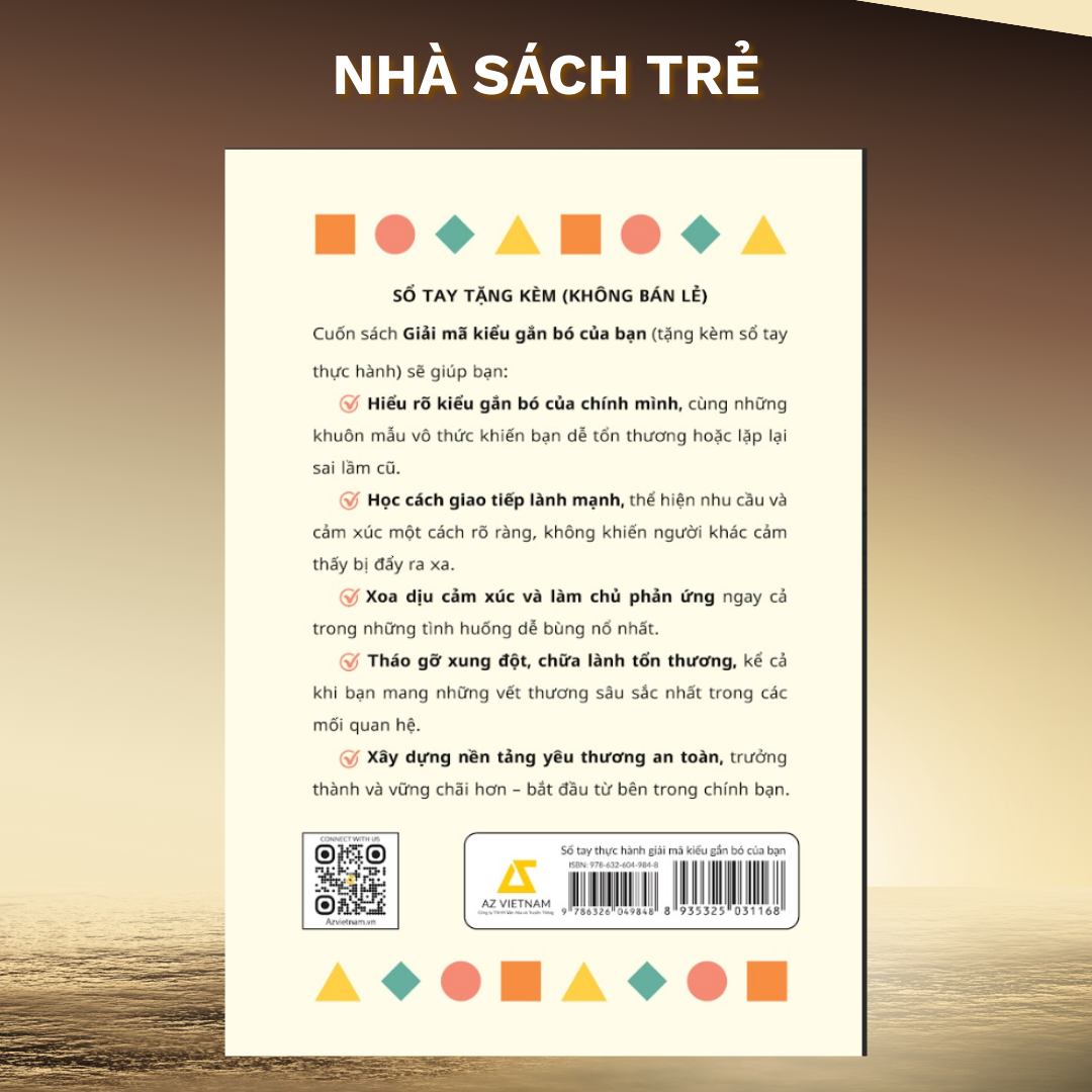 - Nội dung : Bạn gắn bó với người khác như thế nào? Điều đó ảnh hưởng ra sao đến cách bạn yêu, tin tưởng và giữ gìn các mối quan hệ? Hầu hết chúng ta đều mang theo một kiểu gắn bó vô hình được hình thành từ thời thơ ấu - thứ âm thầm chi phối cách ta kết nối, phản ứng và trải nghiệm cảm xúc trong các mối quan hệ. Cuốn sách Giải mã kiểu gắn bó của bạn sẽ đồng hành cùng bạn để: