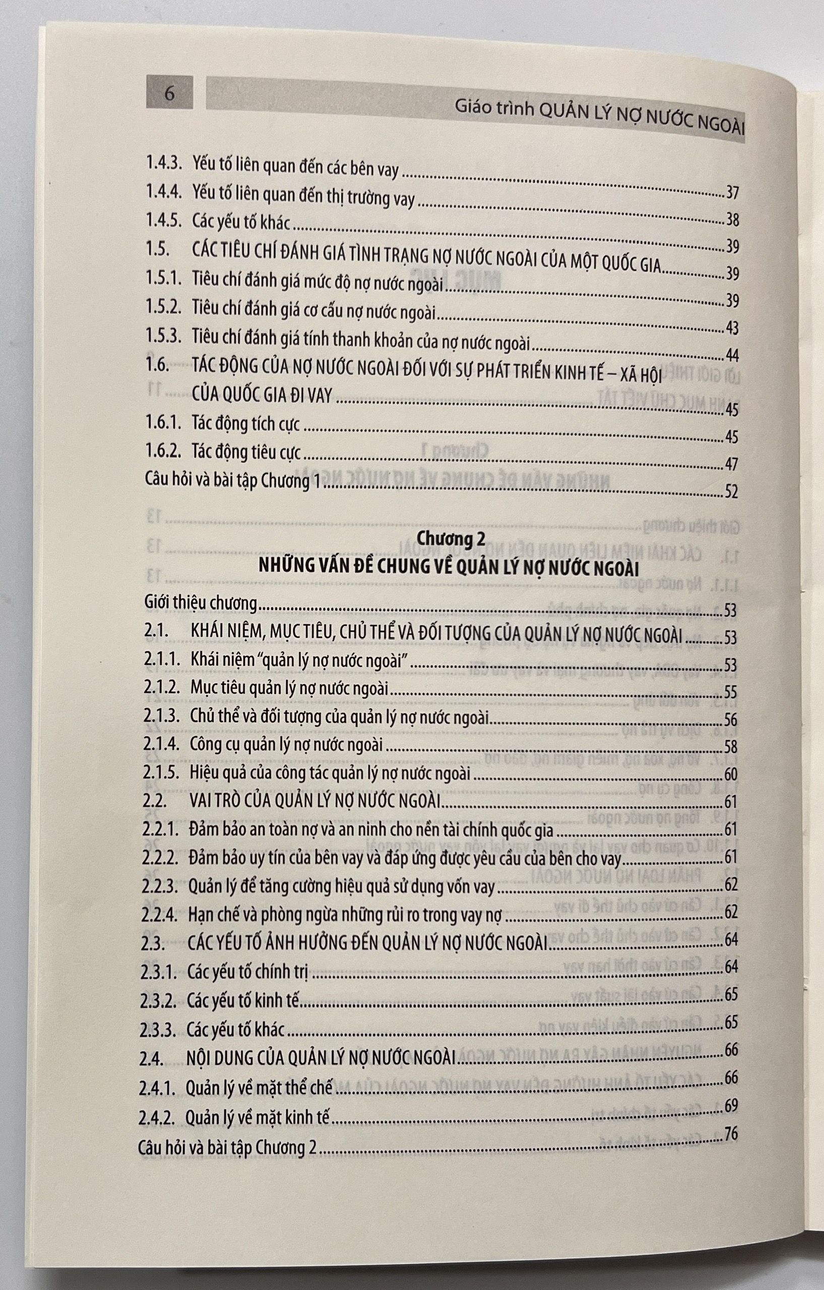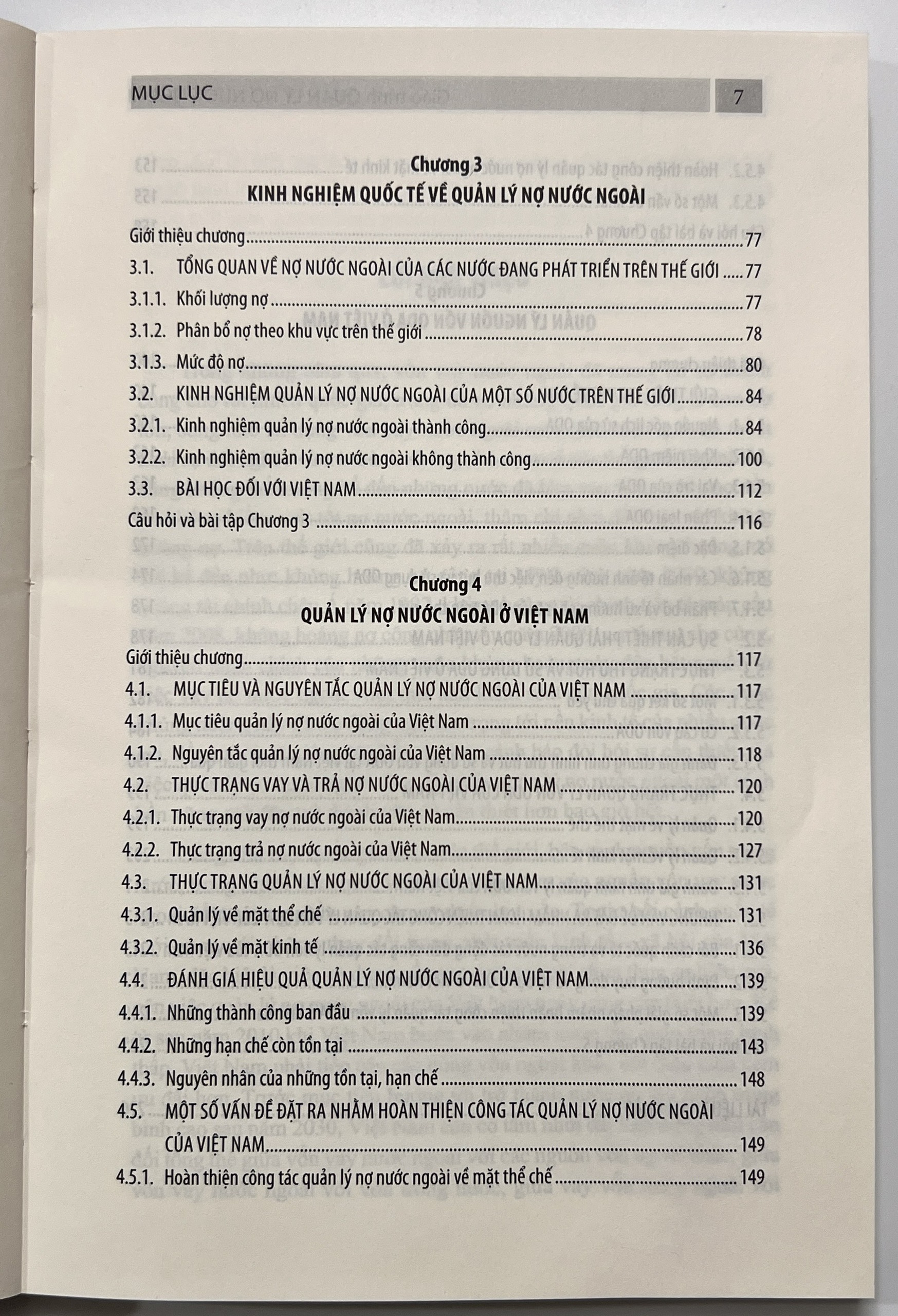 Việt Nam, Giáo trình Quản lý nợ nước ngoài được biên soạn nhằm từng bước chuẩn hóa kiến thức về quản lý nợ nước ngoài, hệ thống hóa cơ sở lý luận về nợ nước ngoài và quản lý nợ nước ngoài, nghiên cứu kinh nghiệm quản lý nợ nước ngoài trên thế giới, phân tích và đánh giá thực trạng quản lý nợ nước ngoài ở Việt Nam. Cuốn giáo trình này dành cho bậc cử nhân đại học thuộc khối ngành kinh tế và là tài liệu tham khảo hữu ích cho các giảng viên và sinh viên chuyên ngành Kinh tế quốc tế.