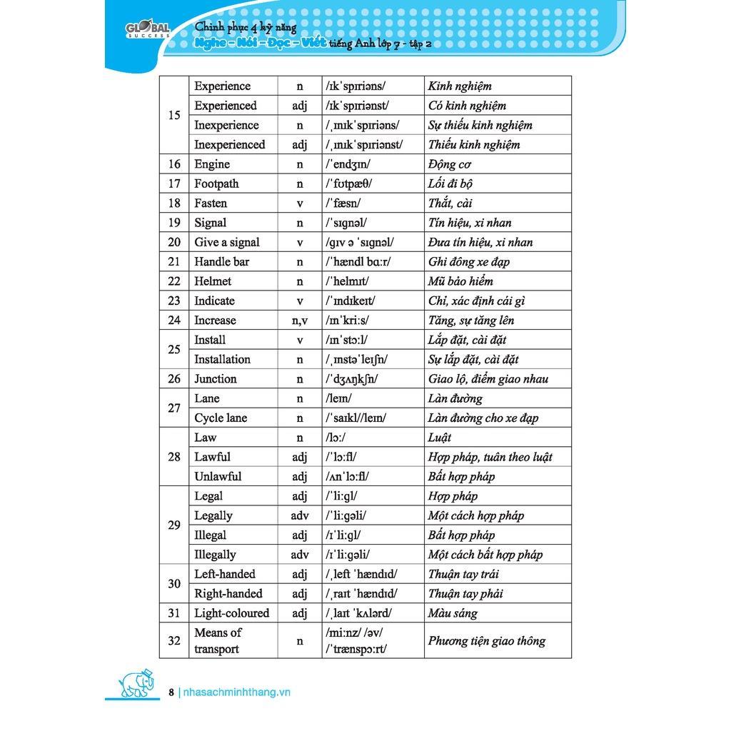Cuốn sách Chinh phục 4 kỹ năng tiếng Anh (Nghe, Nói, Đọc, Viết) lớp 7 được biên soạn dành cho học sinh lớp 7, dựa trên sách giáo khoa Global Success của Bộ Giáo dục và Đào tạo. Sách tập trung vào việc rèn luyện các kỹ năng cơ bản như: Nghe, Nói, Đọc, Viết thông qua các bài tập và phát triển các kỹ năng giao tiếp tổng hợp về cách phát âm đúng, từ vựng phong phú; đọc các đoạn hội thoại, đoạn văn; viết câu hoặc đoạn văn theo mẫu, nói theo chủ đề từng bài học, nhằm giúp các em học sinh vận dụng và tổng hợp kiến thức hiệu quả nhất.
