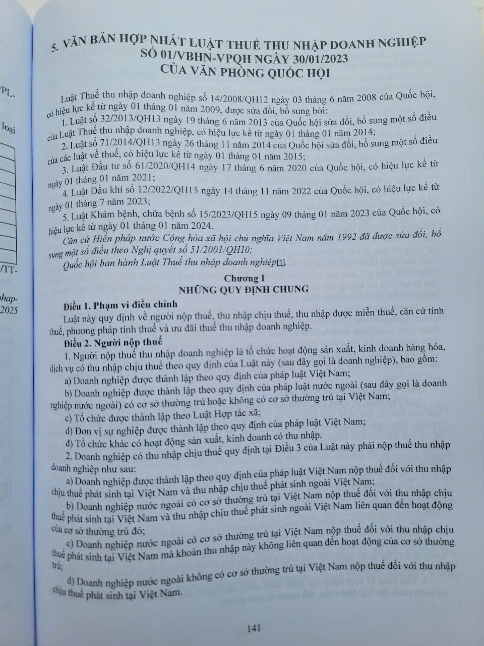 Phần thứ hai. Văn bản hợp nhất luật thuế thu nhập doanh nghiệp, luật thuế thu nhập cá nhân