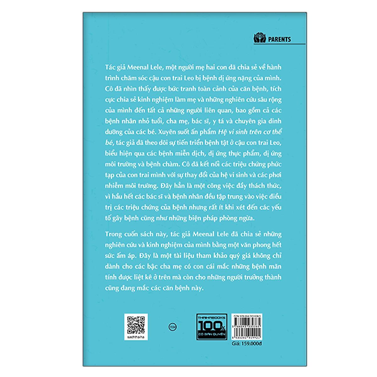 Tác giả Meenal Lele, một người mẹ hai con đã chia sẻ về hành trình chăm sóc cậu con trai Leo bị bệnh dị ứng nặng của mình. Cô đã nhìn thấy được bức tranh toàn cảnh của căn bệnh, tích cực chia sẻ kinh nghiệm làm mẹ và những nghiên cứu sâu rộng của mình đến tất cả những người liên quan, bao gồm cả các bệnh nhân nhỏ tuổi, cha mẹ, bác sĩ, y tá và chuyên gia dinh dưỡng của các bé. Xuyên suốt ấn phẩm Hệ vi sinh trên cơ thể bé, tác giả đã theo dõi sự tiến triển bệnh tật ở cậu con trai Leo, biểu hiện qua các bệnh miễn dịch, dị ứng thực phẩm, dị ứng môi trường và bệnh chàm. Cô đã kết nối các triệu chứng phức tạp của con trai mình với sự thay đổi của hệ vi sinh và các phơi nhiễm môi trường. Đây hẳn là một công việc đầy thách thức, vì hầu hết các bác sĩ và bệnh nhân đều tập trung vào việc các triệu chứng của bệnh nhưng rất ít khi xét đến các yếu tố gây bệnh cũng như những biện pháp phòng ngừa.