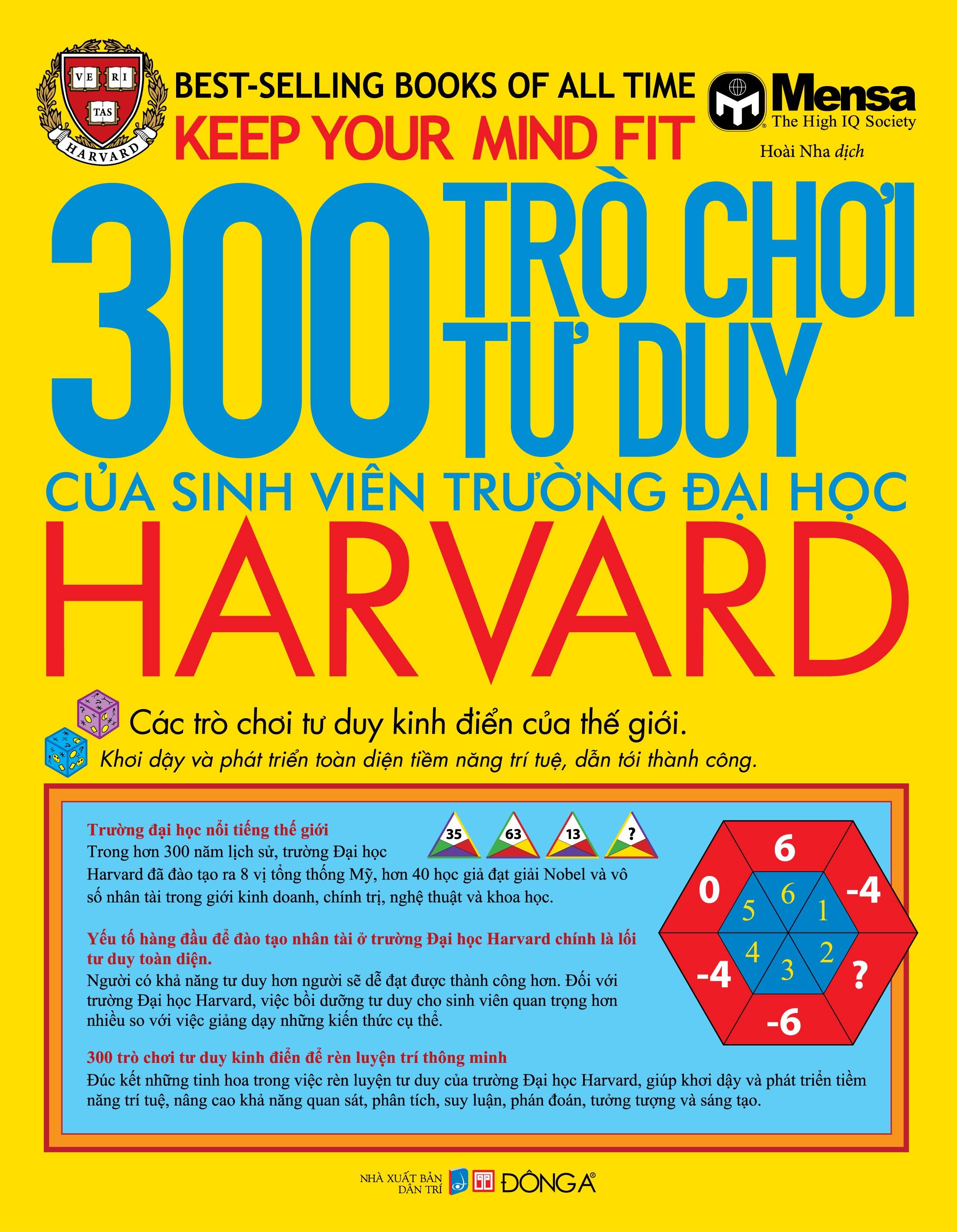 300 trò chơi tư duy của sinh viên trường đại học Harvard là cuốn sách trò chơi bán chạy với số lượng 10 triệu bản trên thế giới, gồm các trò chơi tư duy kinh điển của thế giới, khơi dậy và phát triển toàn diện tiềm năng trí tuệ, dẫn tới thành công.