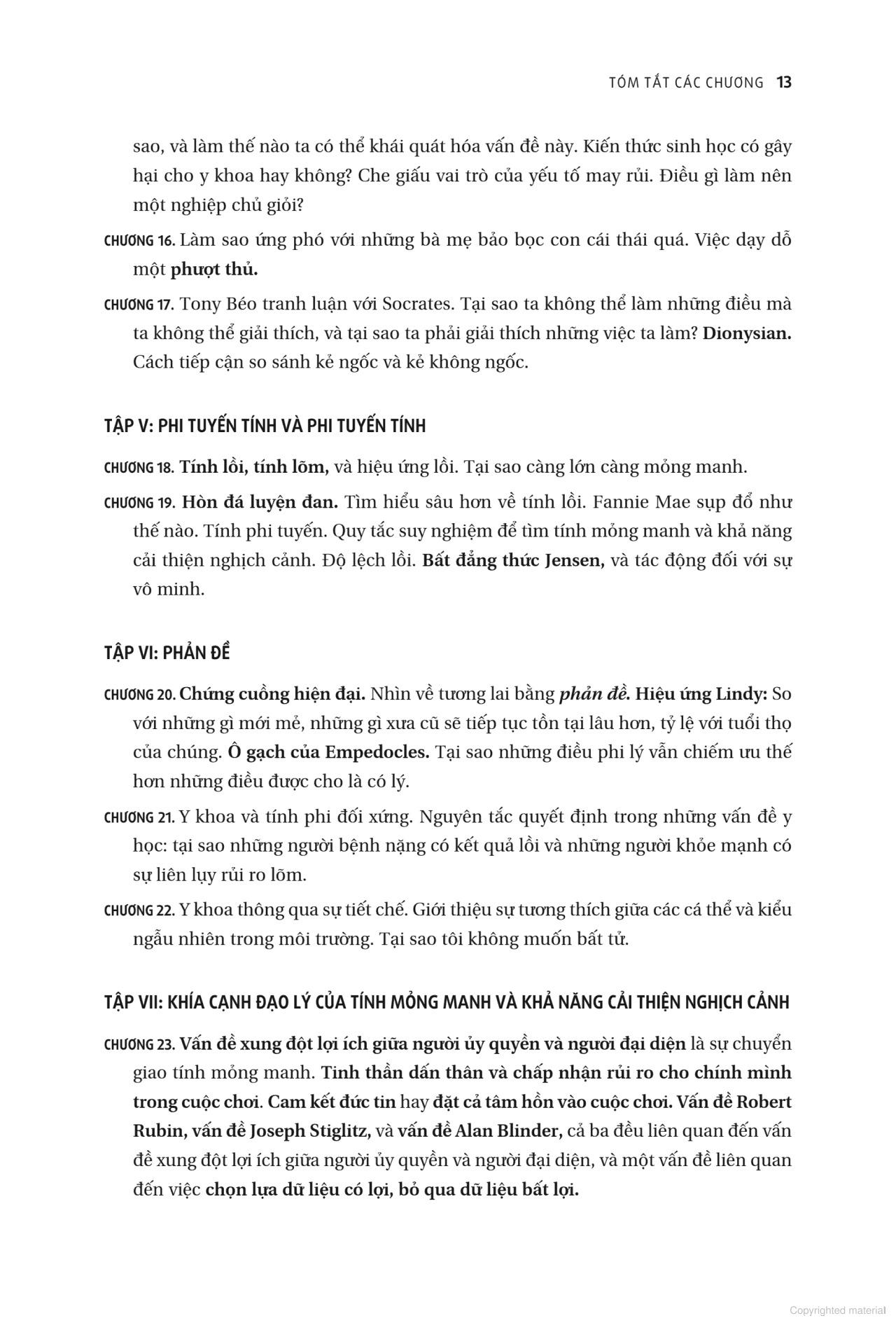 Quyển sách này bao trùm vấn đề phát minh đổi mới thông qua thử nghiệm và sửa sai, các quyết định trong đời sống, chính trị, quy hoạch đô thị, chiến tranh, tài chính cá nhân, các hệ thống kinh tế, và y khoa.
