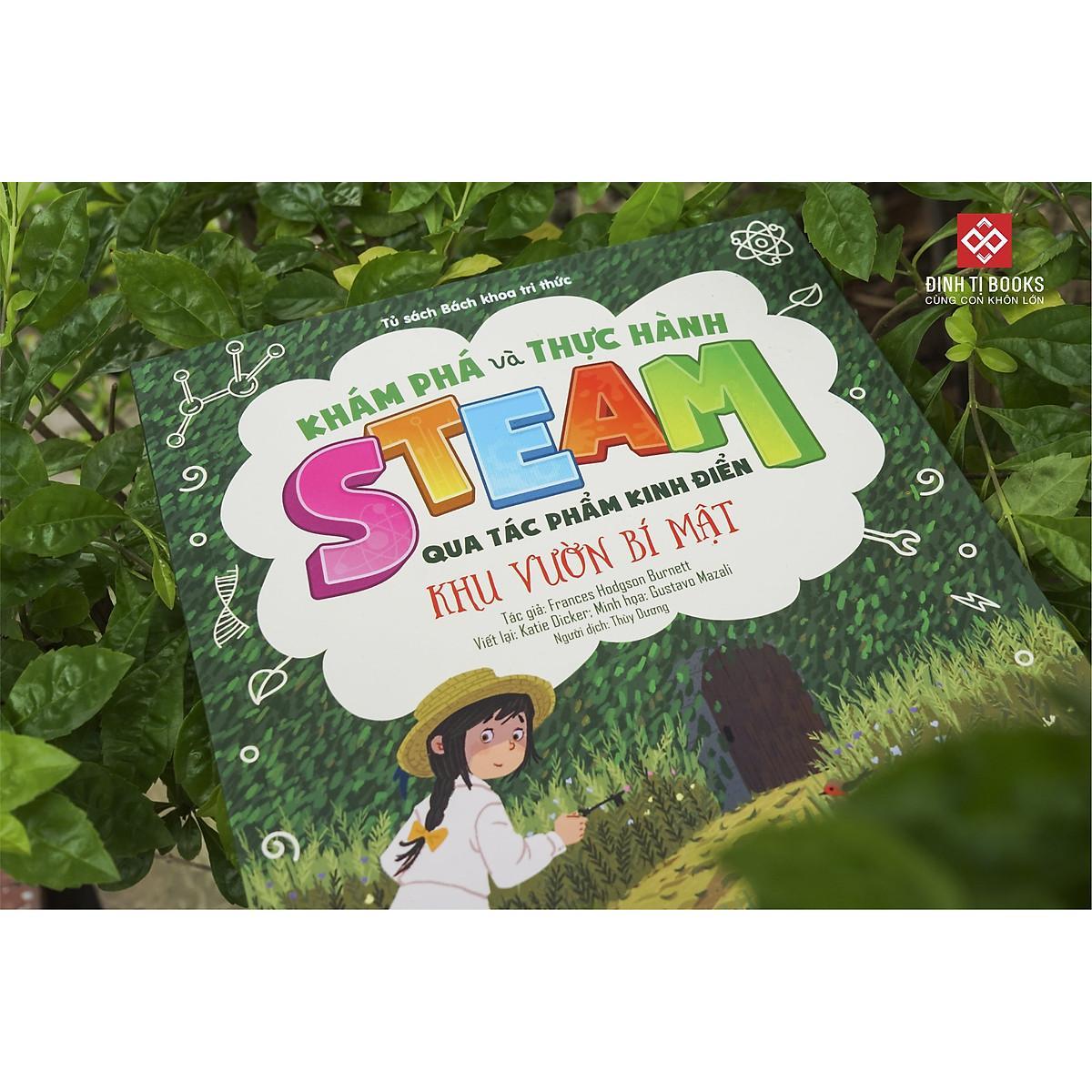 Đầy tò mò và thích thú khi khám phá khu vườn bí mật cùng cô bé Mary Lennox, một khu vườn bỏ hoang với chiếc chìa khóa được , cùng dõi theo hành trình đầy bí mật của Mary nhé! Với chủ đề này, em cũng sẽ được thực hành và khám phá STEAM qua các hoạt động như: làm chiếc còi hình chú chim, biết về các điều kiện để cây phát triển, tìm hiểu về sương mù, tại sao lại có mưa trên cánh đồng hoang… Mỗi một chủ đề trong bộ sách đều được khéo léo lồng ghép 20 hoạt động STEAM thú vị vào trong các tác phẩm văn học kinh điển của thế giới. Theo chân các nhân vật trong sách, em không những được tìm hiểu nhiều thông tin bổ ích mà còn được hướng dẫn cách thực hiện các thí nghiệm lý thú nữa. Sự kết hợp giữa các hình minh họa màu, cùng hình vẽ, biểu đồ sẽ hướng dẫn em chi tiết cách thực hành các hoạt động STEAM như thế nào. Một sự kết hợp mới lạ, lý tưởng giữa những câu chuyện hấp dẫn và niềm yêu thích khoa học của các bạn nhỏ.