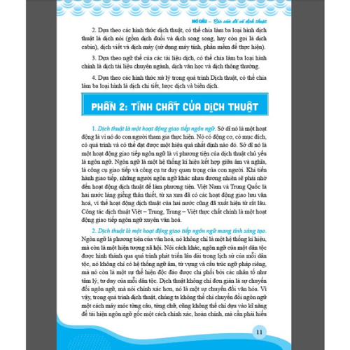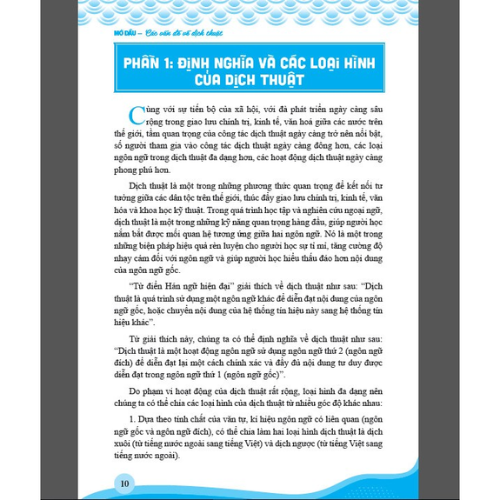 • Giáo trình gồm cả hai kỹ năng biên dịch và phiên dịch. Các kỹ năng được phân bổ cân đối, đồng thời trang bị cho người học năng lực biên và phiên dịch. - Giáo trình dịch hai chiều Trung – Việt và Việt – Trung. Các nội dung lý thuyết và bài tập chú trọng cả 2 ngôn ngữ, qua đó giúp người học rèn luyện kỹ năng dịch Trung – Việt và Việt – Trung.