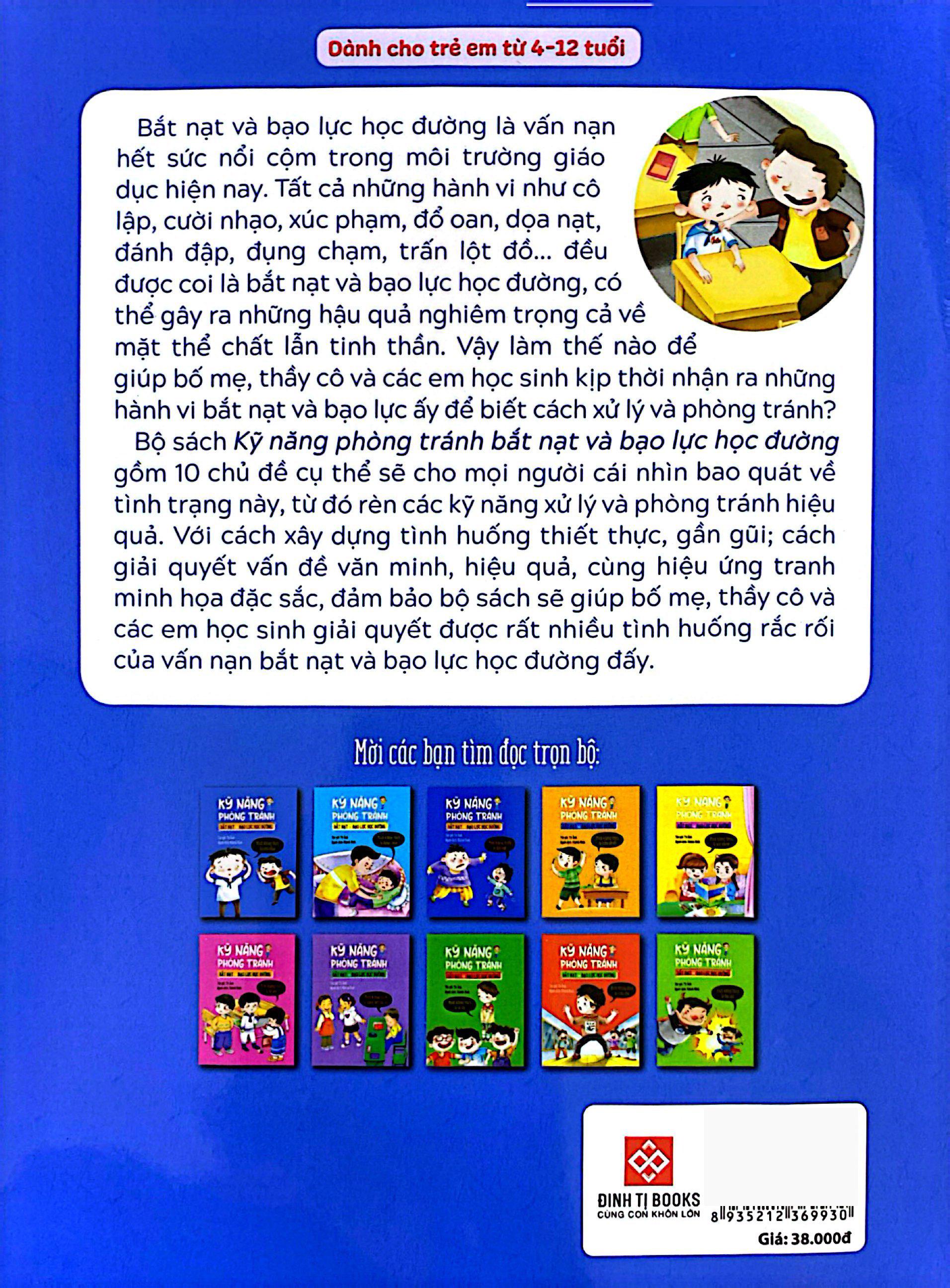 Ngay từ hôm nay, bố mẹ hãy trang bị cho con những kiến thức và kỹ năng cần thiết để phòng tránh vấn nạn học đường này với bộ sách: Kỹ năng phòng tránh bắt nạt và bạo lực học đường.