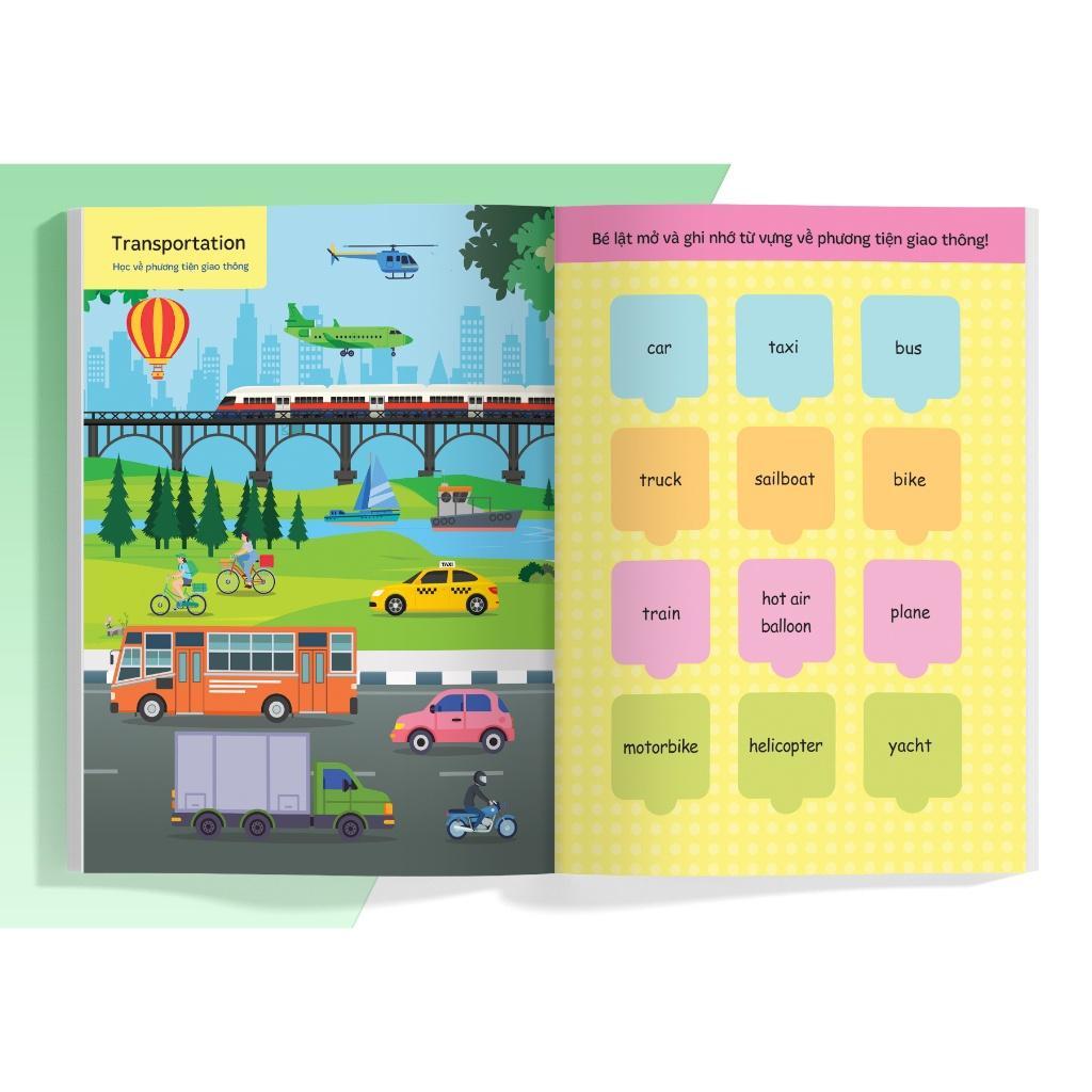Điểm đặc biệt của cuốn sách là tất cả các từ vựng được hình ảnh hóa qua bức tranh đầy màu sắc và xuất hiện đầy bất ngờ thông qua các miếng lật mở. Với hình thức sách lật mở mới mẻ, trẻ em có thể tương tác với các miếng lật mở và khám phá những hình ảnh chân thực của từng miếng lật mở 2D, từ đó giúp bé ghi nhớ từ mới nhanh chóng và phát triển khả năng tưởng tượng.
