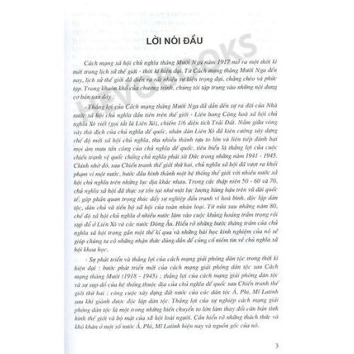 - Thắng lợi của Cách mạng tháng Mười Nga đã dẫn đến sự ra đời của Nhà nước xã hội chủ nghĩa đầu tiên trên thế giới - Liên bang Cộng hoà xã hội chủ nghĩa Xô viết (gọi tắt là Liên Xô), chiếm 1/6 diện tích Trái Đất. Nằm giữa vòng vây thù địch của chủ nghĩa đế quốc, nhân dân Liên Xô đã kiên cường xây dựng chế độ mới xã hội chủ nghĩa, thu nhiều thành tựu to lớn và liên tiếp đánh bại mọi âm mưu tấn công của chủ nghĩa đế quốc, tiêu biểu là thắng lợi của cuộc chiến tranh vệ quốc chống chủ nghĩa phát xít Đức trong những năm 1941 - 1945. Chính nhờ đó, sau Chiến tranh thế giới thứ hai, chủ nghĩa xã hội đã vượt ra khỏi phạm vi một nước, bước đầu hình thành một hệ thống thế giới với nhiều nước xã hội chủ nghĩa trên những lục địa khác nhau. Trong các thập niên 50 - 60 và 70, chủ nghĩa xã hội đã thực sự tồn tại như một lực lượng hùng hậu trên vũ đài quốc tế, góp phần quan trọng thúc đẩy sự nghiệp đấu tranh vì hòa bình, độc lập dân tộc, dân chủ và tiến bộ xã hội của toàn nhân loại. Từ nửa sau những năm 80, chế độ xã hội chủ nghĩa ở nhiều nước lâm vào cuộc khủng hoảng trầm trọng rồi sụp đổ ở Liên Xô và các nước Đông Âu. Hiểu rõ những bước thăng trầm của chủ nghĩa xã hội trong gần một thế kỷ qua và những bài học kinh nghiệm của nó sẽ giúp chúng ta có những nhận thức đúng đắn để củng cố niềm tin về chủ nghĩa xã hội khoa học.