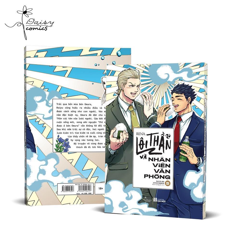 - Loại bìa: Bìa mềm, gồm bìa áo cán bóng có tay gấp + bìa keo Trong thời gian hòa nhập vào thế giới con người, Raiyu càng ngày càng nhận ra rằng anh và Omura có thật ít thời gian để ở bên nhau, vì vậy anh muốn tranh thủ thực hiện tất cả những điều mà cả hai cùng muốn làm. Đồng thời, đây cũng chính là khoảng thời gian Omura sống thật với bản thân mình trong suốt bao nhiêu năm qua. Anh cùng Raiyu đối mặt với bạn bè, với gia đình, người thân,... để giới thiệu với họ rằng Raiyu chính là người quan trọng sẽ bầu bạn cùng anh đến cuối đời. Cả hai đã tìm được cho mình chốn về bình yên, ấm áp và tràn đầy hy vọng về tương lai. Hành trình 5 tập truyện của Raiyu và Omura với đầy đủ cung bậc cảm xúc của tình yêu, tình bạn, tình thân đã khép lại tại đây. Xin chân thành cảm ơn tác giả Rena đã đem tới cho chúng ta một bộ truyện đáng yêu, trọn vẹn mà đầy triết lý đáng suy ngẫm như “Lôi thần và nhân viên văn phòng”. Hãy cùng đón chờ một tác phẩm khác của sensei trong thời gian gần nhất cùng Daisy nhé!