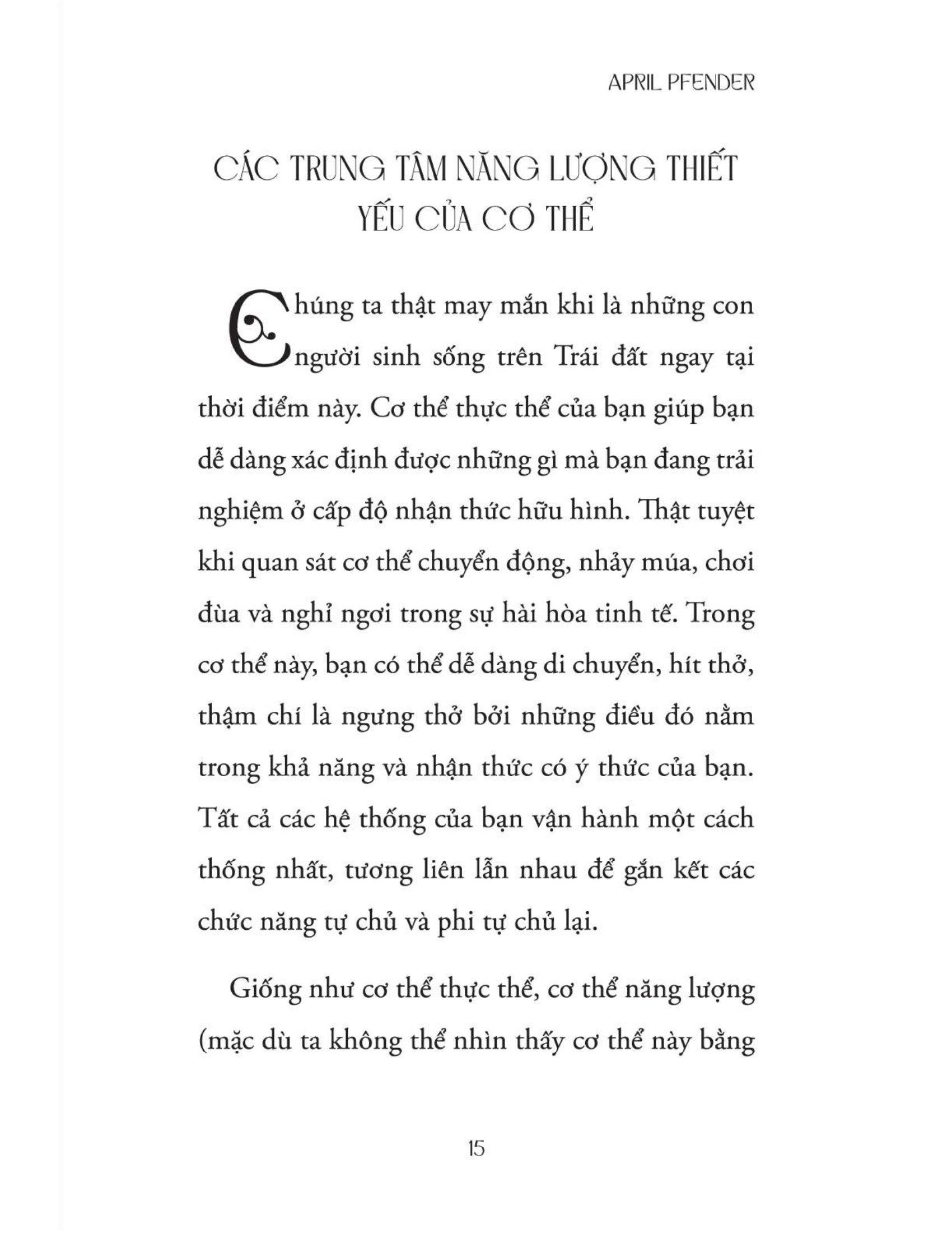 Luân Xa Thiền là loại hình rèn luyện mang tới vô số ích lợi cho người thực hành, giúp nâng cao cả sức khỏe thể chất và sức khỏe tinh thần. Chắc hẳn ai cũng từng nghe tới thiền, nhưng không phải người nào cũng biết cách thiền thế nào để đạt được hiệu quả mong muốn. Nắm bắt được nhu cầu thực hành thiền định ngày một gia tăng, April Pfender đã mang tới cho bạn đọc cuốn sách Essential Chakra Meditation: Luân xa – Cân bằng cảm xúc và Đánh thức năng lượng tự chữa lành. Sách là cuốn cẩm nang chi tiết hướng dẫn cách đả thông 7 luân xa chính trong cơ thể bằng thiền, qua đó giúp người thực hành tự chữa lành và duy trì sức khỏe, thúc đẩy bản thân phát triển thành phiên bản tốt nhất của chính m.ình. April đặc biệt thiết kế cuốn sách phù hợp với nhịp sống hiện đại hiện nay, vì với mỗi luân xa cần khai thông cô đều giới thiệu 3 bài tập với thời lượng lần lượt là 5, 15 và 30 phút cùng bài tập mở rộng tùy chọn cũng như mẹo nhỏ hữu ích; từ đó giúp người đọc chọn được lộ trình thực hành thiền phù hợp nhất với bản thân. Tác giả April Pfender là giảng viên phương pháp Reiki và hướng dẫn viên thiền tại Santa Monica, California. Cô là người sáng lập Santa Monica Healing, một tổ chức chuyên áp dụng các liệu pháp chữa lành theo phương pháp Reiki và lượng tử, hướng dẫn thiền, chữa lành bằng âm thanh, đồng thời tổ chức các buổi hội thảo và chương trình nghỉ dưỡng tâm linh. Cô cũng phát triển và thiết kế một dòng trang sức mang năng lượng chữa lành được làm từ các viên tinh thể thấm nhuần năng lượng Reiki và mặt trăng từng được vinh danh trên tạp chí nổi tiếng The Voice. Đây là cuốn sách nối tiếp cuốn sách nổi tiếng của cô, Chakra Balance (tạm dịch: Cân bằng luân xa). Gần đây, cô tập trung theo đuổi thiết kế các chương trình chữa lành, buổi hội thảo cũng như các chuyến nghỉ dưỡng tập trung vào cách để thức tỉnh, chuyển hóa và trao quyền cho phái nữ. Hành trình làm một người chữa lành của April bắt đầu từ gần 15 năm trước. Cô ủng hộ lối sống chân thành với Bản thể Tối cao, theo đuổi ước mơ và biểu đạt bản thân thông qua nghệ thuật. April tin rằng Reiki và thiền giúp kết nối chúng ta với chính bản thân và những người khác một cách toàn diện hơn, đồng thời củng cố ý thức cộng đồng bằng cách trang bị năng lực để chúng ta mang hòa bình tới cho thế giới. Lời khen tặng dành cho cuốn sách “Một bản hướng dẫn trực quan và chi tiết, phù hợp với cả người mới làm quen với thiền hay những ai đã thực hành thiền định lâu năm. Cuốn sách này mang tới những phương pháp chữa lành bằng năng lượng đơn giản và nhiều hướng dẫn cần thiết để dẫn dắt bạn tới thành công.” - Kara MoraMarco, bác sĩ châm cứu và y học phương Đông.