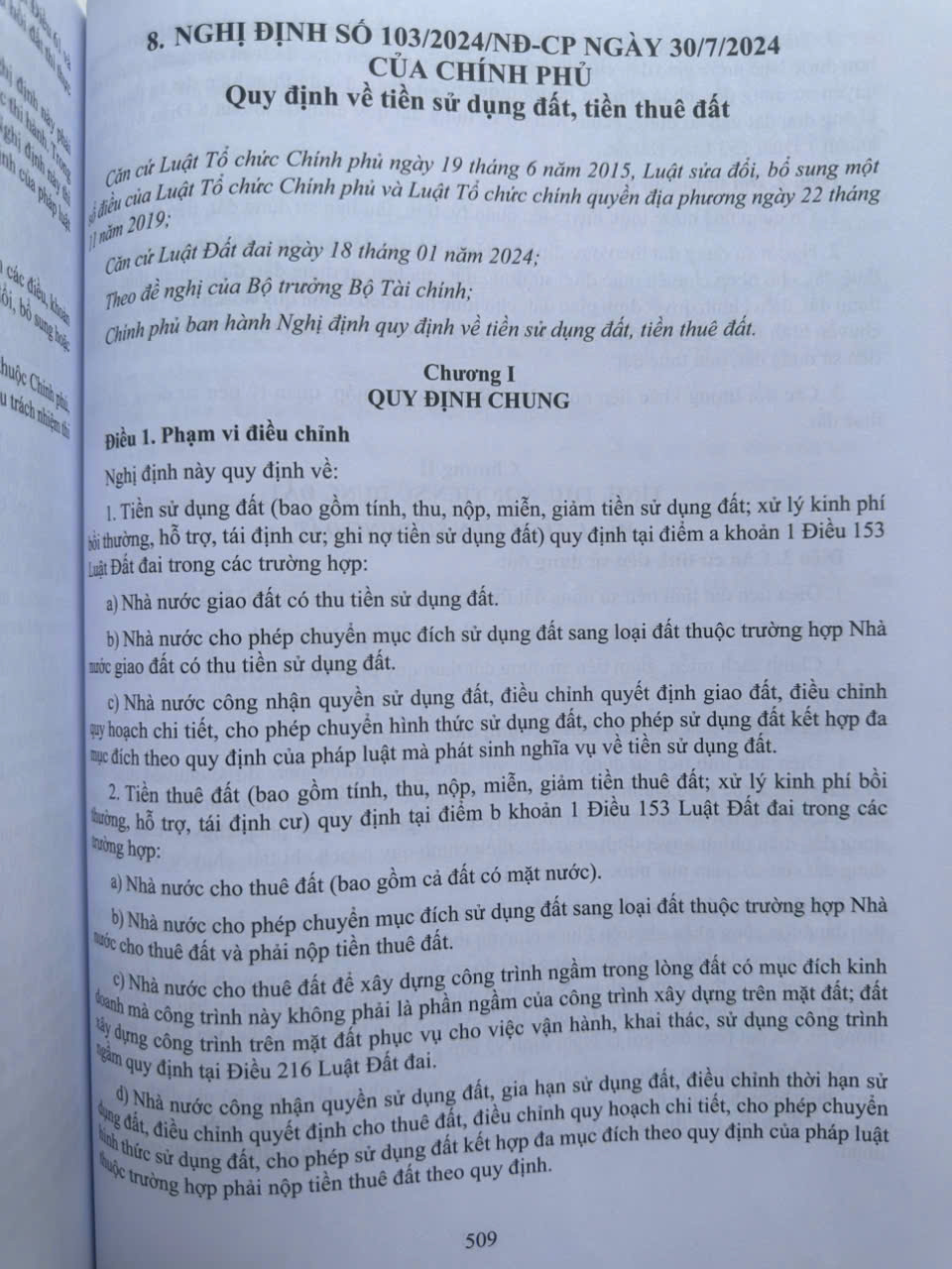 – Nghị định 103/2024/NĐ-CP ngày 30/7/2024 Quy định về tiền sử dụng đất, tiền thuê đất