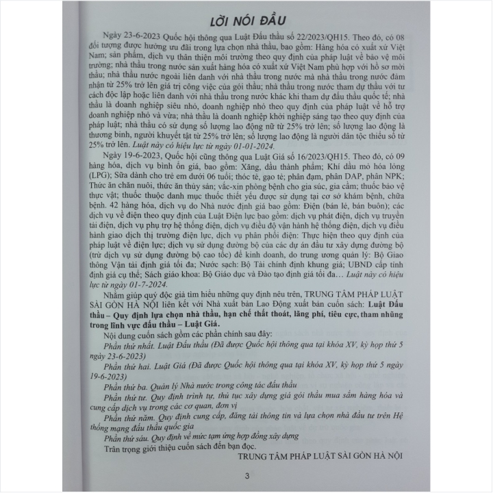 - Toàn bộ sách bìa mềm khổ lớn 20 x 28 cm phân phối bởi Nhà sách Nam Việt đều được bọc sách Plastic MIỄN PHÍ và xuất hóa đơn điện tử đầy đủ, nhanh chóng. …/… Lời giới thiệu: Ngày 23-6-2023 Quốc hội đã thông qua Luật Đấu thầu số 22/2023/QH15. Luật Đấu thầu này có hiệu lực từ ngày 01-01-2024. Dưới đây là một số nội dung đáng chú ý: