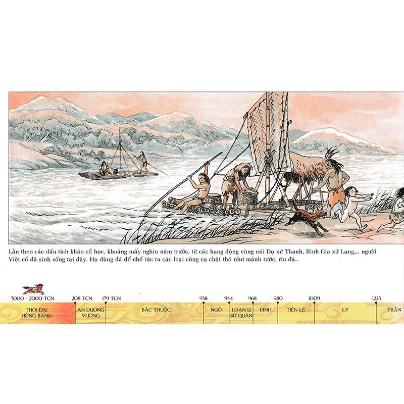 "Lược sử nước Việt bằng tranh" - đúng như tên gọi, khi đọc cuốn sách, bạn sẽ được đắm mình trong dòng sử Việt trôi xuôi từ thượng nguồn lịch sử, thuở cha Lạc Long Quân kết duyên cùng mẹ Âu Cơ, những dấu chân cha ông từ ngày mở nước, cho tới những mốc son của thời hiện đại.