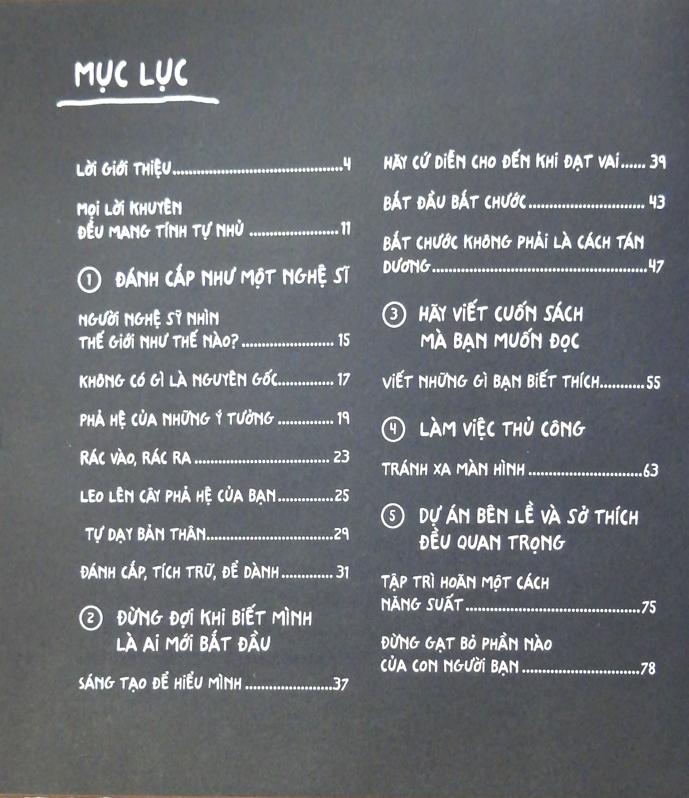 Sách của tác giả Austin Kleon. Ông là nhà văn, và nghệ sĩ sống tại Austin, Texas, là tác giả của 3 cuốn sách bán chạy trên New York Times : Nghệ thuật « đánh cắp » ý tưởng ; Nghệ thuật PR bản thân ; Cứ làm đi và Newspaper Blackout.