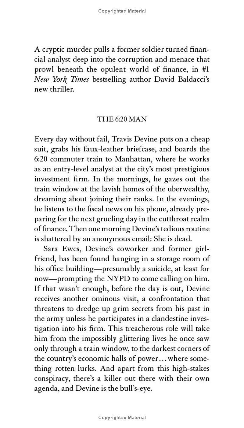 A cryptic murder pulls a former soldier turned financial analyst deep into the corruption and menace that prowl beneath the opulent world of finance, in this #1 New York Times bestselling thriller from David Baldacci.
