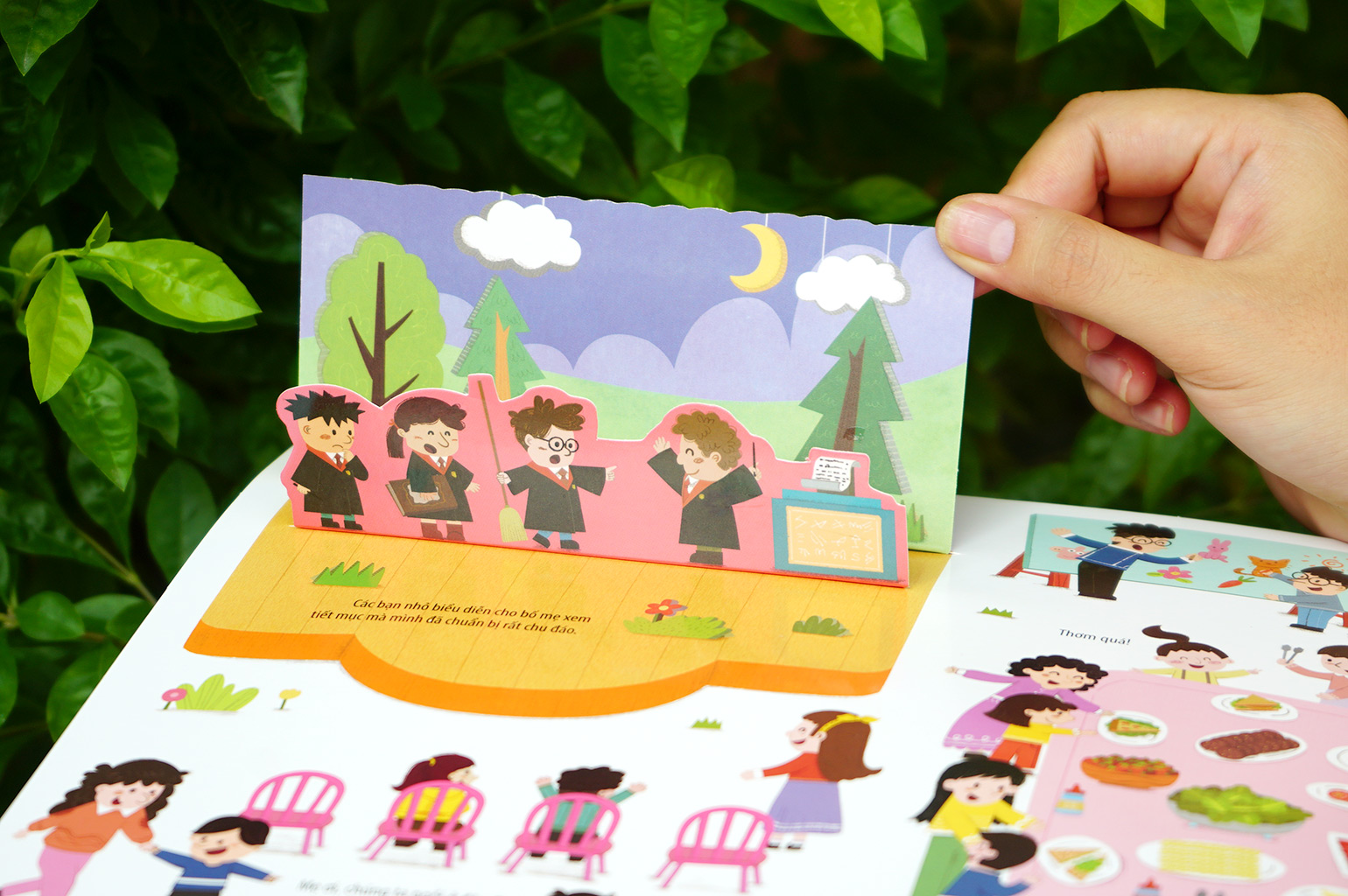 Bách khoa kỹ năng sống đa tương tác - Những hoạt động ở trường mẫu giáo giúp con vui vẻ đến lớp là cuốn sách Lật mở - Chuyển động có nội dung vô cùng