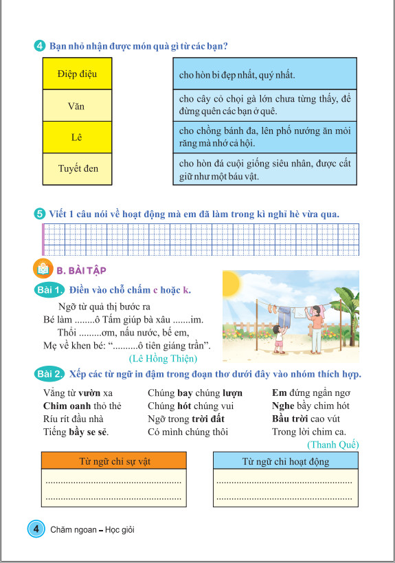 Mỗi phiếu trong cuốn sách sẽ tương ứng với nội dung một tuần học trên lớp của các em. Các em sẽ được tiếp thu các kiến thức về từ, tìm hiểu nghĩa của từ