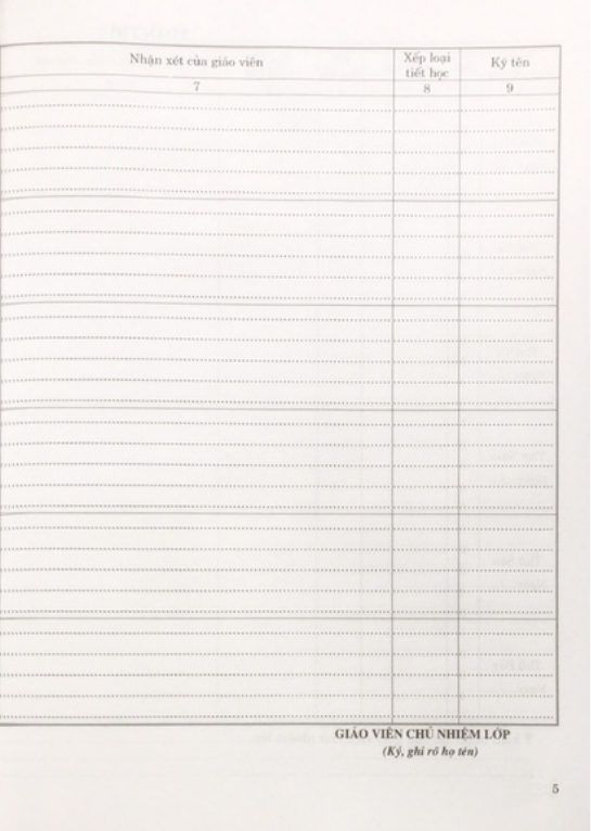 Sổ ghi đầu bài trung học cơ sở mẫu chuẩn của bộ giáo dục và đào tạo việt nam Sổ ghi đầu bài có phần đánh giá xếp loại của giáo viên bộ môn và