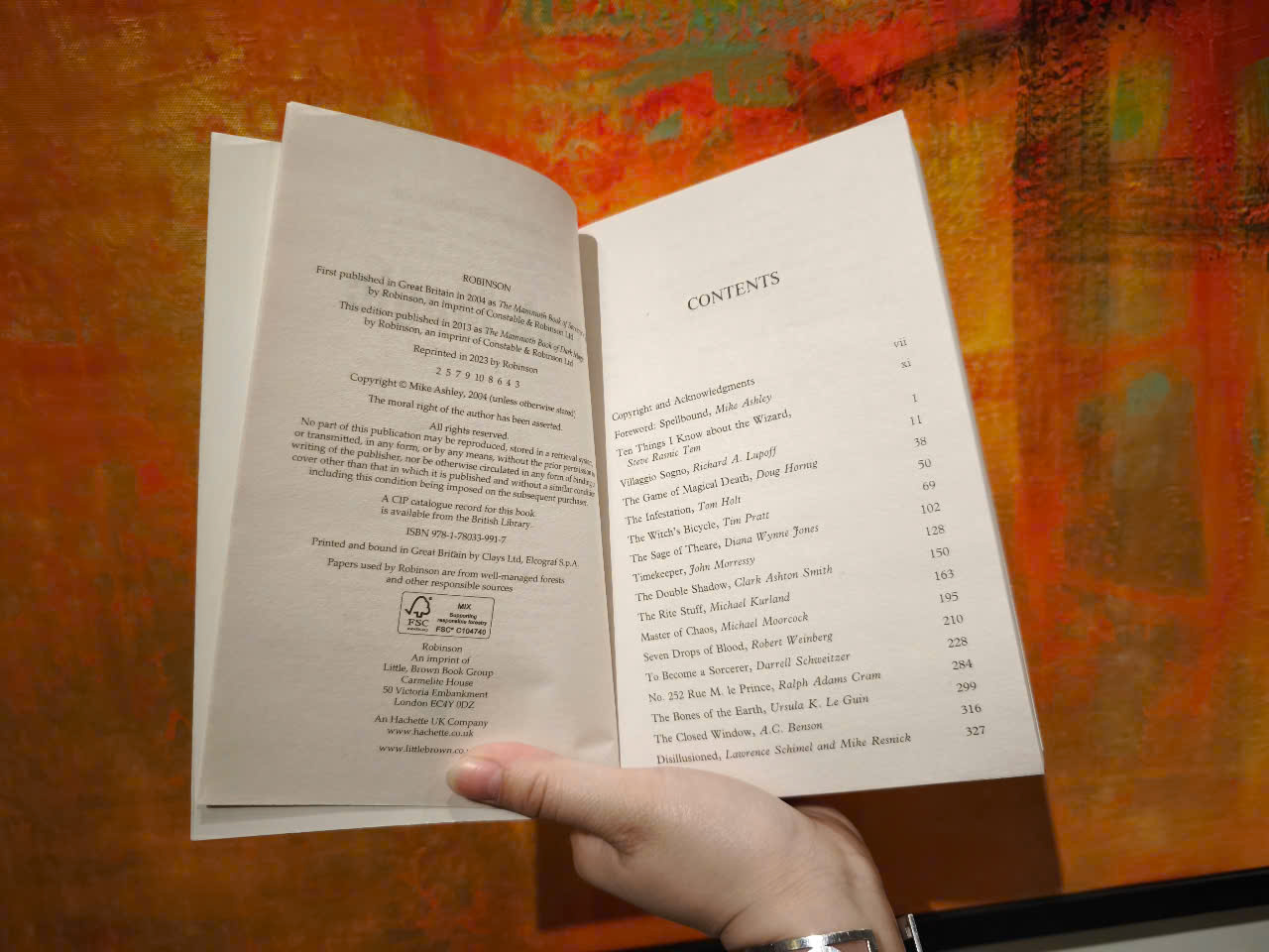 Twenty-three spellbinding tales of sorcery, wizardry and witchcraft, of the ceaseless battle between good and evil. From dark lords and epic clashes between the forces of good and evil to a child's struggle to control magical powers for the first time this wonderfully varied collection comprises stories by the most outstanding writers of fantasy: A. C. Benson, James Bibby, Marion Zimmer Bradley, Louise Cooper, Ralph Adams Cram, Peter Crowther, Esther M. Friesner, Tom Holt, Doug Hornig, Diana Wynne Jones, Michael Kurland, Tim Lebbon, Ursula K. Le Guin, Richard A. Lupoff, Michael Moorcock, John Morressy, Tim Pratt, David Sandner, Lawrence Schimel and Mike Resnick, Darrell Schweitzer, Clark Ashton Smith, Steve Rasnic Tem and Robert Weinberg.