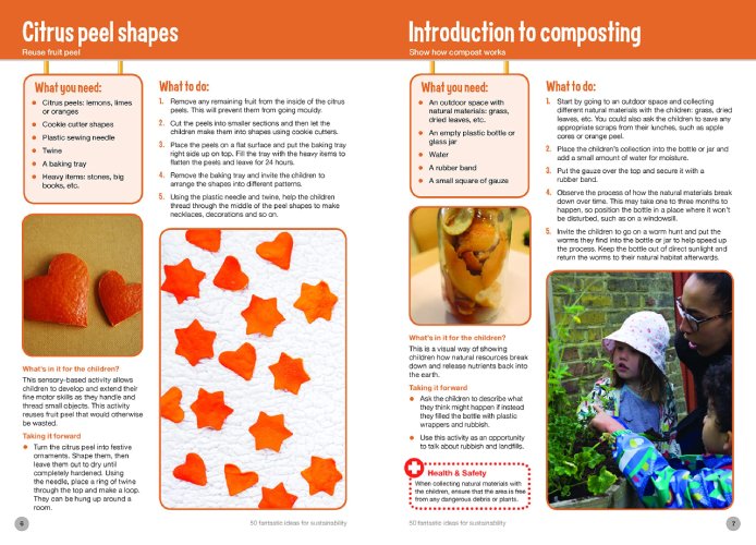 Teach children to reduce, reuse, recycle, repair and be respectful with 50 fun activities for encouraging environmental sustainability. From making planters and bird feeders to creating natural paints or even bringing broken crayons back to life, these original ideas encourage children and practitioners to see the potential for creativity and fun using and reusing everyday, easy-to-source items, some of which might have otherwise gone to waste.