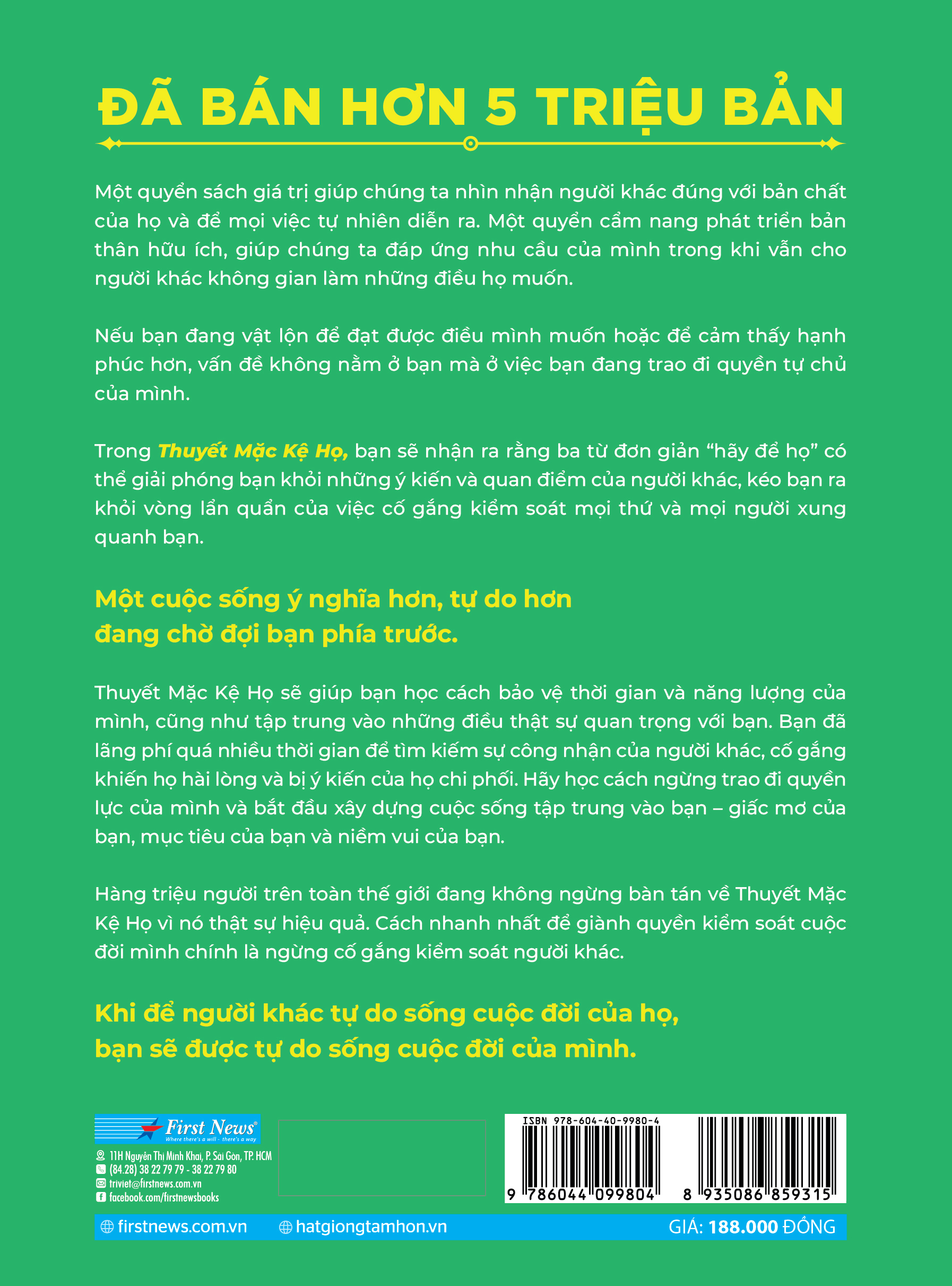 Trong quyển sách mới nhất của mình, Thuyết Mặc Kệ Họ, Mel Robbins – tác giả sách bán chạy và chuyên gia nổi tiếng về tư duy, động lực và thay đổi hành vi – chia sẻ với độc giả cách để ngừng lãng phí năng lượng vào những điều bạn không thể kiểm soát và tập trung vào đối tượng thật sự quan trọng: bạn, hạnh phúc của bạn, mục tiêu của bạn, cuộc sống của bạn.