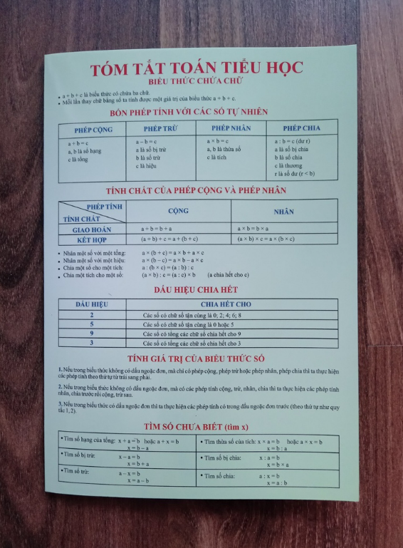 ✨Sách Tóm tắt Công thức Toán tiểu học
