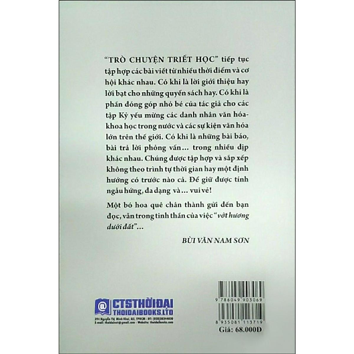 Trò Chuyện Triết Họclà tập hợp 92 bài viết của nhà nghiên cứu triết học Bùi Văn Nam Sơn, đăng trên báo Sài Gòn Tiếp Thị gần 2 năm (25.5.2010 – 16.4.2012).
