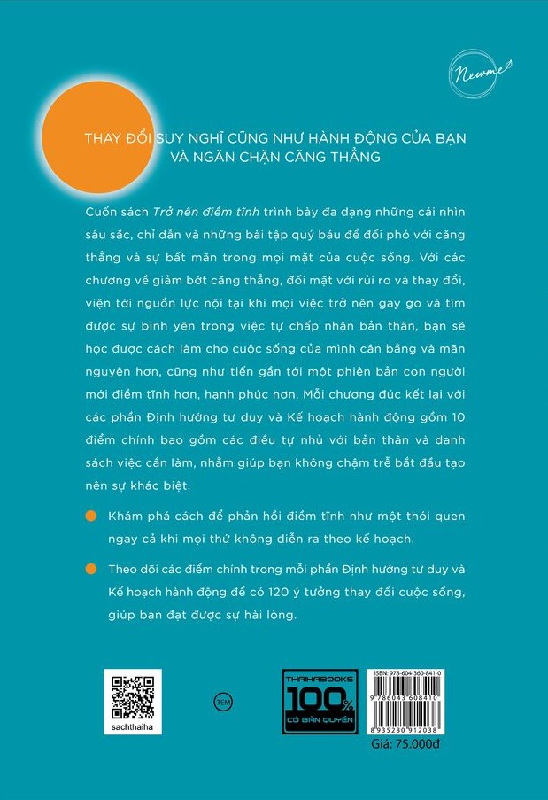 bản thân, bạn sẽ học được cách làm cho cuộc sống của mình cân bằng và mãn nguyện hơn, cũng như tiến gần tới một phiên bản con người mới điềm tĩnh hơn, hạnh phúc hơn. Mỗi chương đúc kết lại với các phần Định hướng tư duy và Kế hoạch hành động gồm 10 điểm chính bao gồm các điều tự nhủ với bản thân và danh sách việc cần làm, nhằm giúp bạn không chậm trễ bắt đầu tạo nên sự khác biệt.