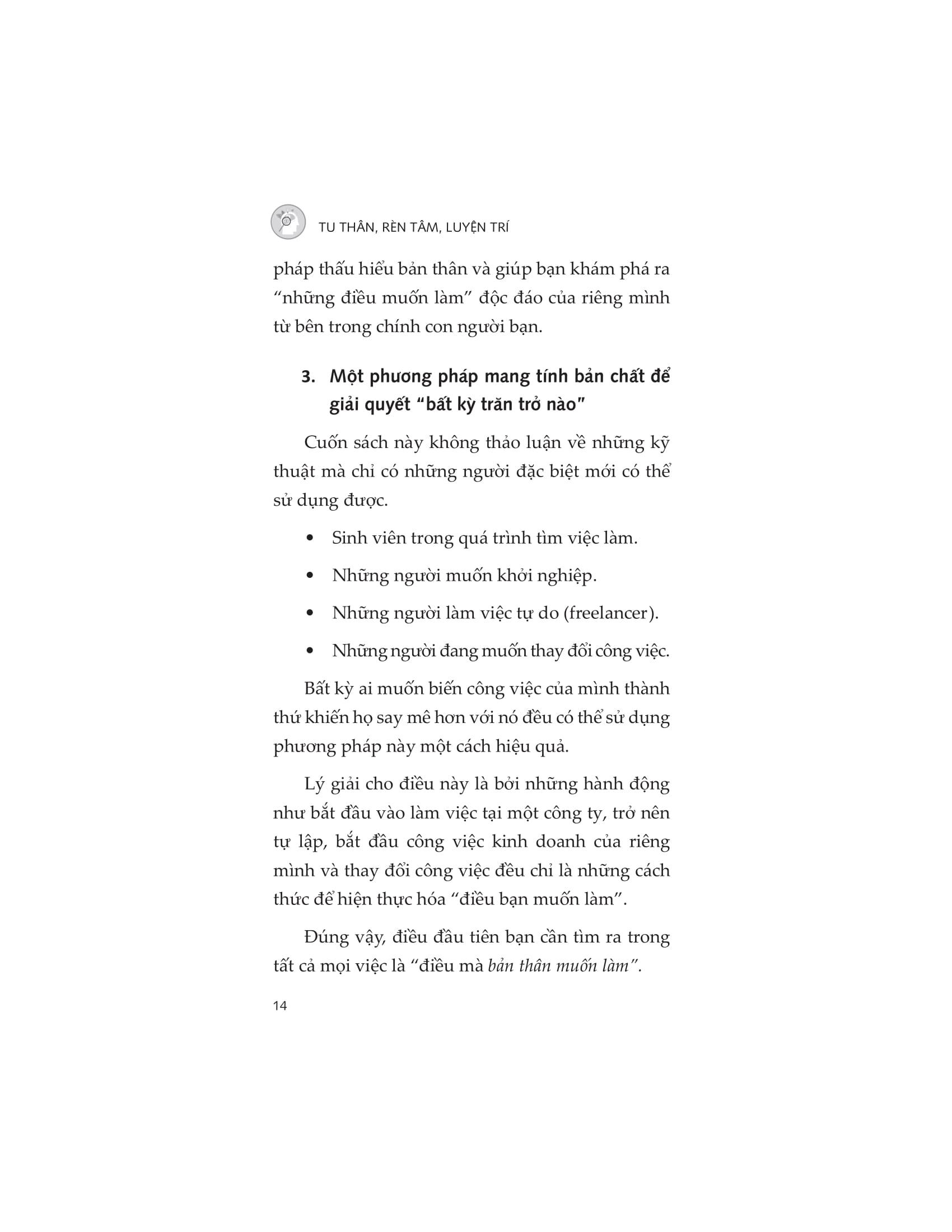 Cuốn sách Tu thân, Rèn tâm, Luyện trí là bản hướng dẫn chi tiết giúp bạn khai phá bản thân, mở khóa tiềm năng, thức tỉnh cảm xúc, giải phóng sức mạnh. Từ đó, giúp bạn tìm được công việc bản thân có năng lực, thực sự muốn làm và thực sự cần làm.