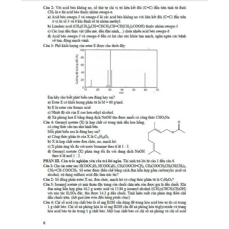 Mua tại TiktokSách - Tuyển tập đề thi tốt nghiệp THPT môn hóa học (Cấu trúc đề thi 2025) - HA Kỳ thi tốt nghiệp trung học phổ thông từ năm 2025 sẽ thực hiện theo Chương trình giáo dục phổ thông 2018 với một số thay đổi, đề thi tiếp cận đánh giá năng lực của thí sinh. Quy định về cấu trúc và định dạng đề thi tốt nghiệp trung học phổ thông từ năm 2025 dựa theo Quyết định 764/QĐ-BGDĐT của Bộ trưởng Bộ Giáo dục và Đào tạo ban hành ngày 08/3/2024. Mỗi đề thi môn Hóa học gồm 3 phần như sau: – Phần 1 gồm các câu hỏi ở dạng thức trắc nghiệm nhiều lựa chọn, mỗi câu có 4 phương án chọn 1 đáp án đúng. – Phần 2 gồm các câu hỏi ở dạng thức trắc nghiệm dạng Đúng/Sai. Mỗi câu hỏi có 4 ý, tại mỗi ý thí sinh lựa chọn đúng hoặc sai. – Phần 3 gồm các câu hỏi ở dạng thức trắc nghiệm trả lời ngắn. Thí sinh tô vào các ô tương ứng với đáp án của mình. Cuốn “Bộ đề ôn luyện thi tốt nghiệp trung học phổ thông môn Hóa học” do chúng tôi biên soạn là tài liệu hữu ích giúp học sinh lớp 12 rèn luyện kiến thức, kĩ năng Hóa học theo hướng phát triển phẩm chất và năng lực đáp ứng yêu cầu Chương trình giáo dục phổ thông 2018. Nội dung tài liệu gồm 3 phần: – Phần 1 gồm các bộ đề ôn luyện theo từng chủ đề – Phần 2 gồm các bộ đề ôn luyện thi tốt nghiệp THPT – Phần 3 đáp án và lời giải chi tiết Tài liệu được biên soạn giúp học sinh ôn luyện kiến thức, kĩ năng sau mỗi chủ đề và ôn luyện thi tốt nghiệp THPT môn Hóa học sắp tới. Chúc các em ôn tập tốt và đạt kết quả cao trong các kì thi sắp tới.