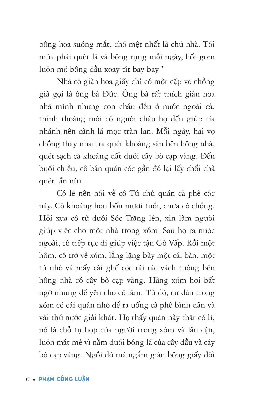 “Hoa lá quanh đây hình như đã góp phần tạo nên tính cách hiền hậu và mơ mộng của ba tôi. Đó là lí do ông yêu thương cái xóm nhỏ với những cây xanh mà cả xóm đồng lòng gìn giữ.”(Trích “Xóm thiên đường”)