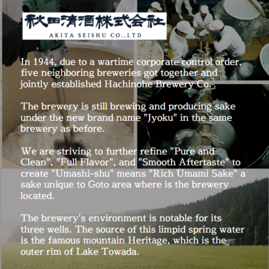 NGƯỜI DƯỚI 18 TUỔI KHÔNG ĐƯỢC UỐNG RƯỢU, BIA Xuất xứ: Nhật Bản Thành phần: Nước, gạo nội địa Nhật, men gạo Koji nội địa Nhật. Hàm lượng ethanol: 15% Hướng dẫn sử dụng: Có thể uống ở nhiệt