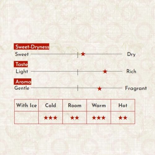 NGƯỜI DƯỚI 18 TUỔI KHÔNG ĐƯỢC UỐNG RƯỢU, BIA Xuất xứ: Nhật Bản Thành phần: Gạo, nước, men rượu Hàm lượng Ethanol: 14.7% Hướng dẫn sử dụng: Uống trực tiếp, uống nóng hoặc lạnh Hướng dẫn bảo quản: Bảo quản