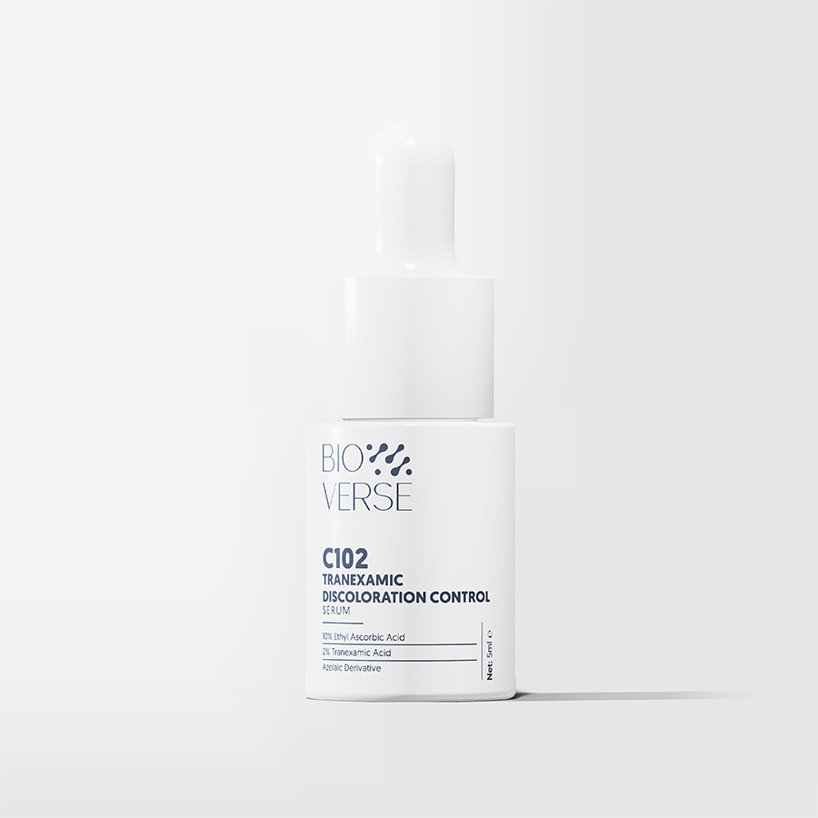 GIỚI THIỆU: Tinh chất C102 Tranexamic Discoloration Control Serum là sản phẩm thúc đẩy làm mờ các vết thâm mụn, cải thiện da đều màu và sáng mịn. Chứa 10% Ethyl Ascorbic Acid giảm quá trình sản sinh Melanin quá mức dưới da gây nên vết thâm sạm kết hợp cùng 2% Tranexamic Acid & 3% phái sinh Azelaic để tăng cường làm trắng sáng da, giảm vết thâm đỏ trên da nhanh chóng, cải thiện kết cấu da đàn hồi và hạn chế lão hóa.