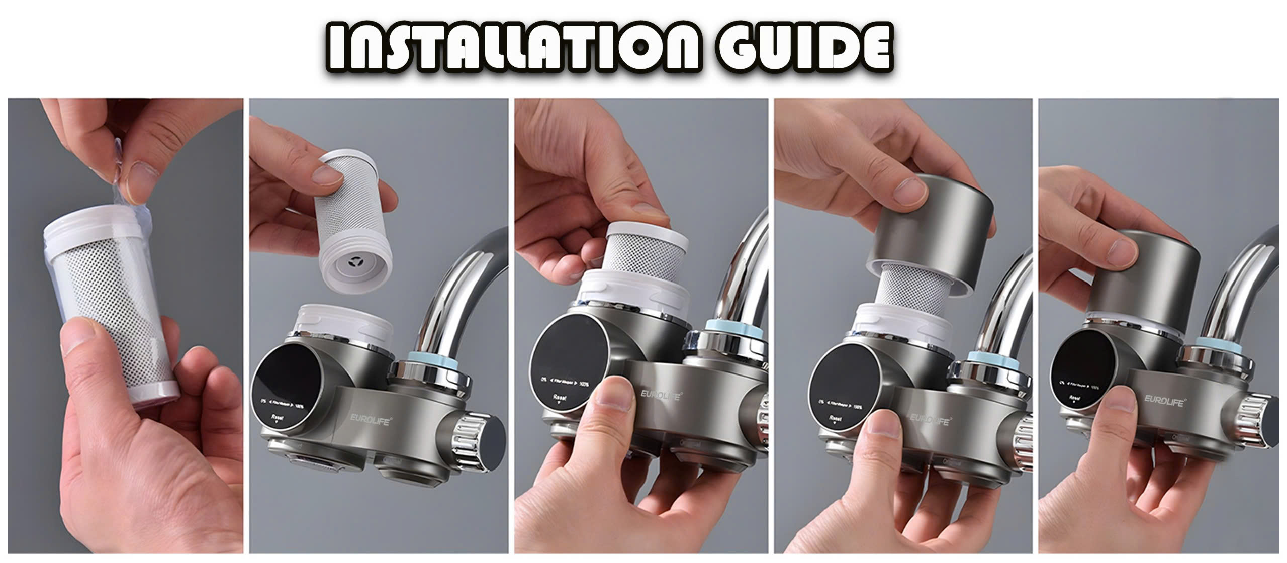 Máy lọc nước tinh khiết trực tiếp đầu vòi, mà hình LED Eurolife EL-LS-A15 Màu xám ️ Thương hiệu Eurolife Việt Nam Sản phẩm được bán tại thị trường Hoa Kỳ Màn hình LED hiển