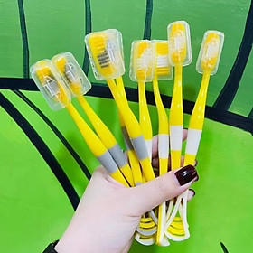 -Sản phẩm dụng cụ vệ sinh -Hộp 8 cây bàn chải cho bé 2 in 1 kèm dụng cụ cạo lưỡi ,cán cầm chống trượt ,lông bàn chải sợi tơ siêu mềm , giúp chải răng sạch hơn , giảm vi khuẩn gây sâu răng và hôi miệng an toàn và tiện lợi -Xuất xứ : Trung Quốc -Chất liệu : nhựa PP cao su  -Kích thước : dài 19cm -Màu sắc :  giao màu ngẫu nhiên -Đặc điểm nổi bật : -Thiết kế lông bàn chải từ hàng trăm sợi tơ siêu mềm , len lỏi vào từng kẽ răng giúp chải răng sạch hơn  -Massage nướu lợi giúp loại bỏ những mảng bám cứng đầu nhấtcầm -Với thành phần từ hạt carbon an toàn cho sức khỏe răng miệng người dùng , lông mềm mịn an toàn  -Bàn chải thon gọn giúp đánh răng dễ dàng  -Cán làm từ nhựa kết hợp với lớp bọc cao su chống trượt cực tốt  -Phía cuối bàn chải được thiết kế thêm phần cạo tưa lưỡi , giúp giảm vi khuẩn gây sâu răng và hôi miệng  -Thiết kế hình vịt vàng xin xắn ,đáng yêu ngộ nghĩnh ,kích thích nhu cầu đánh răng hằng ngày cho các bé  Sản phẩm này là tài sản cá nhân được bán bởi Nhà Bán Hàng Cá Nhân và không thuộc đối tượng phải chịu thuế GTGT. Do đó hoá đơn VAT không được cung cấp trong trường hợp này.