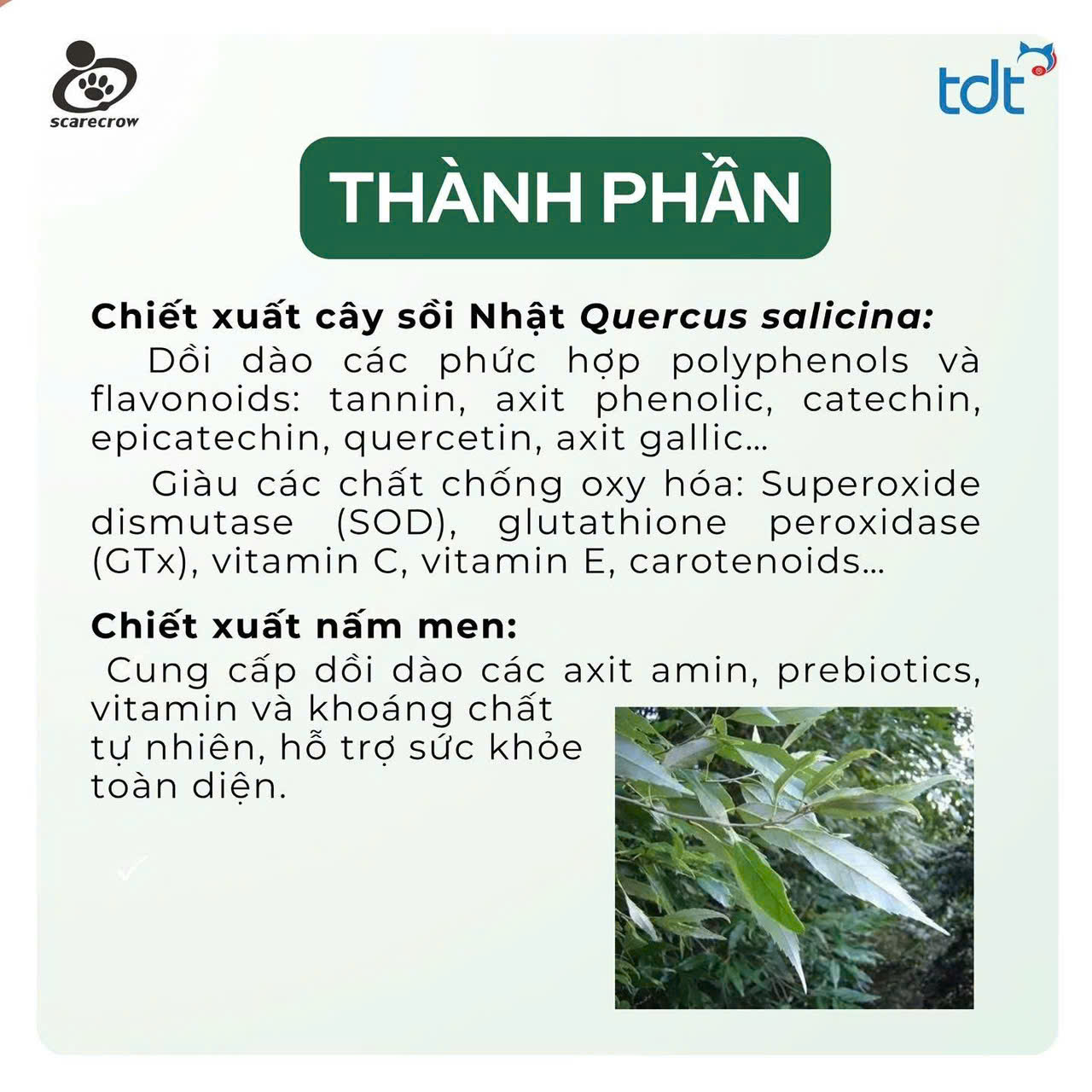 Chiết xuất từ cây Quercus salicina: Dồi dào các phức hợp polyphenols và flavononoids cực kì an toàn cho thú cưng.
