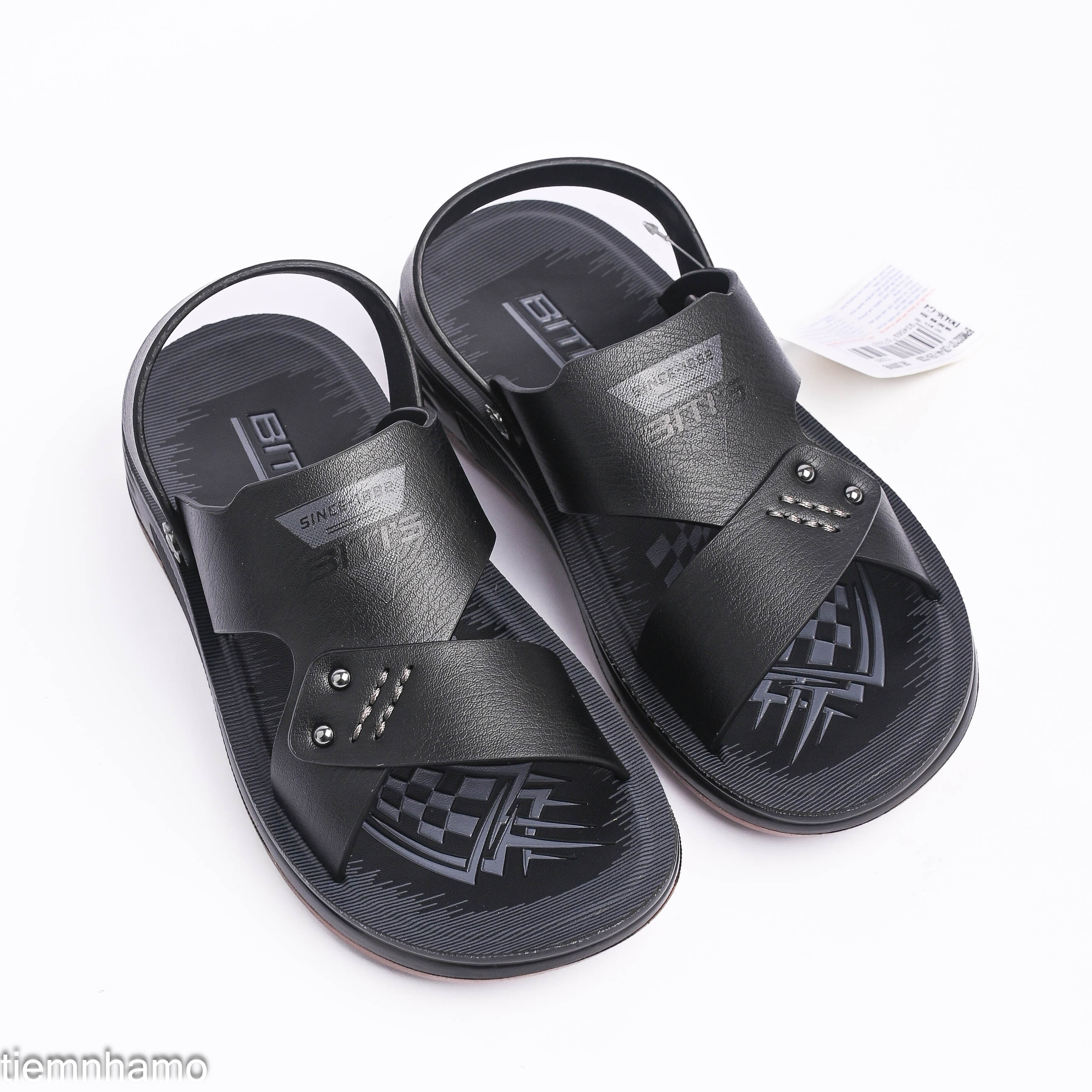 (V) Mô tả sản phẩm: Sandal Biti's có quai linh động chuyển thể thành dép: Với chất liệu da tổng hợp mềm mại,êm ái,quai sau đẩy lên thành dép linh hoạt. Đế cao su có xẻ rãnh, vừa tạo sự chắc chắn cho đôi chân,vừa chịu lực và mang lại sự bền bỉ. Với quai ngang hở lỗ tạo sự thông thoáng cho người dùng khi đi lâu, kèm họa tiết hình học in dọc thân và logo in thân trong giúp tăng tính thời thượng hơn. Màu sắc: Nâu bò - đen Size:38-39-40-41-42-43-44