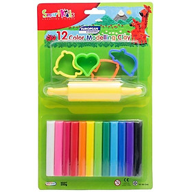 ✨Sáp Nặn Học Tập 12 Màu Thường SMARTKIDS (4 Khuôn + 1 Cây Lăn) SK-BL12M5R