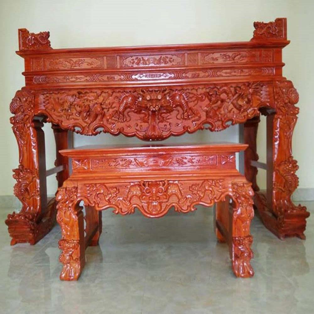 🔴 Combo đầy đủ 2 chiếc Sập thờ Tứ linh gỗ hương đỏ Nam Phi trả Khách Bình Phước