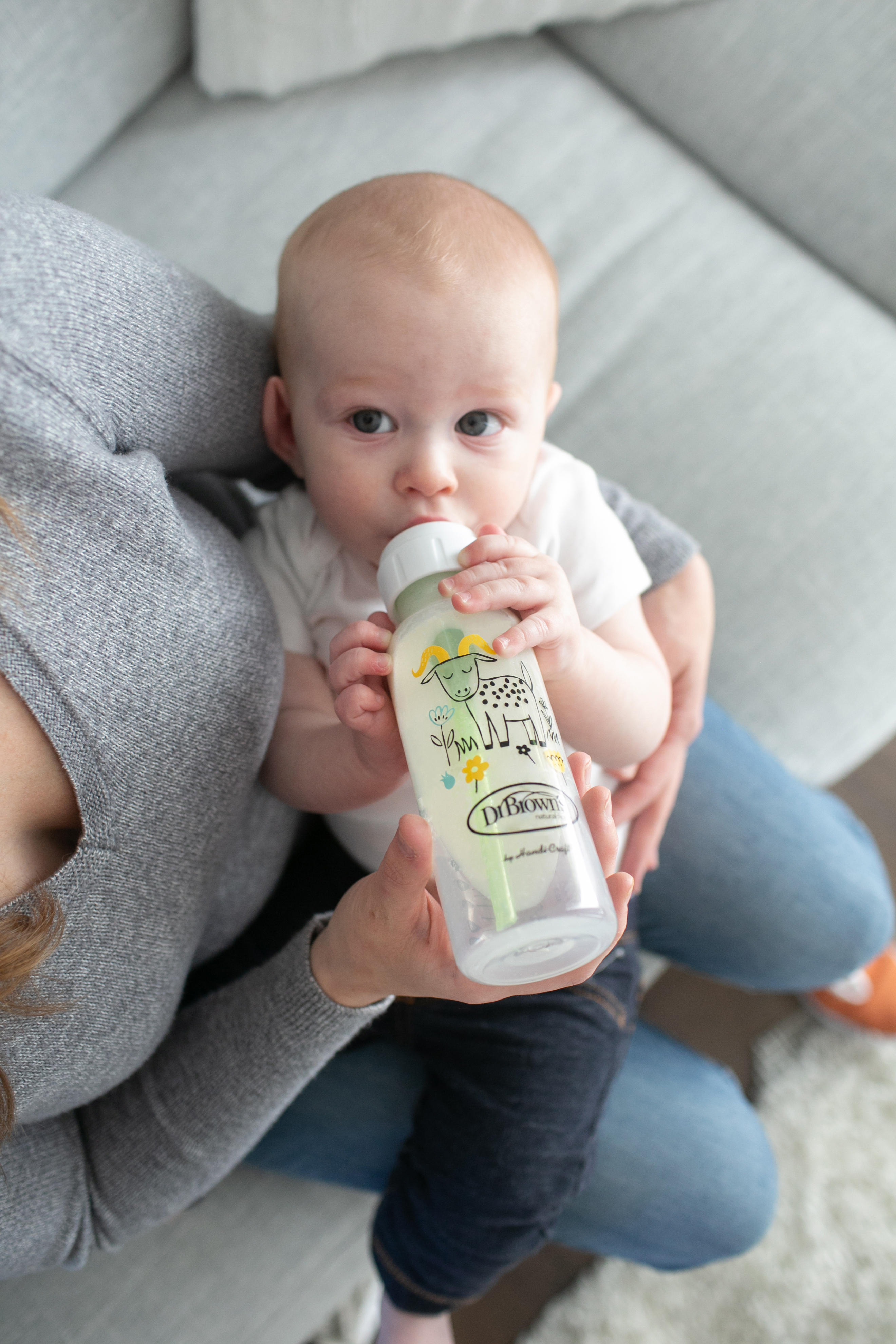 • Dr.Brown’s khuyến nghị các mẹ cho trẻ dưới 6 tháng tuổi thì nên sử dụng hệ thống van khí trong bình sữa để đảm bảo bé nhận được đầy đủ chất dinh dưỡng và sức khoẻ tốt nhất, vì nếu không lắp hệ thống van thì không thể giảm đầy hơi, dẫn đến đau thắt dạ dày, ăn không đủ no, làm suy hao vitamin v.v... bình sữa lúc này chỉ có tính năng chống sặc sữa, và không làm sẹp núm ty