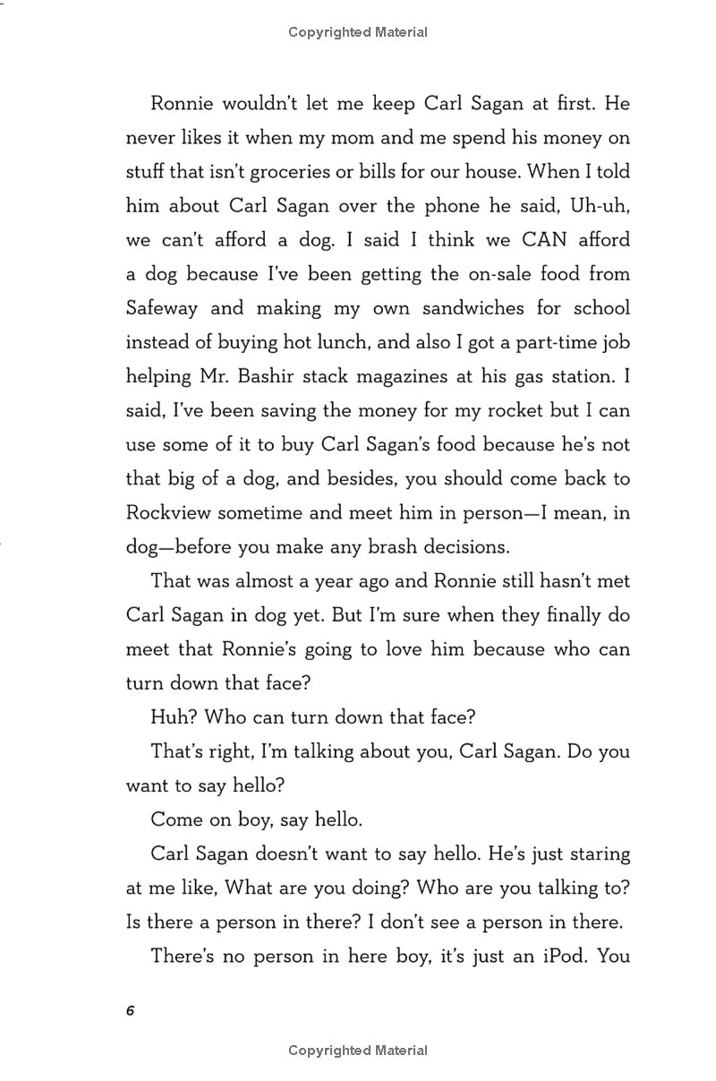 A space-obsessed boy and his dog, Carl Sagan, take a journey toward family, love, hope, and awe in this funny and moving novel for fans of Counting by 7s, Walk Two Moons, and The Curious Incident of the Dog in the Night-Time.