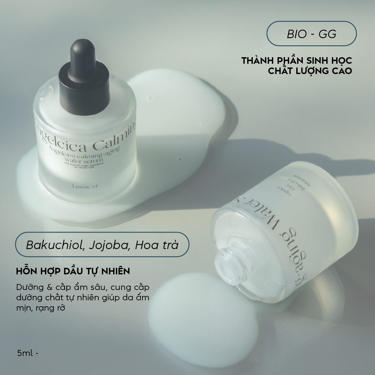 Serum ngăn ngừa lão hóa dưỡng ẩm Lassie'el 5ml chiết xuất từ thiên nhiên phục hồi sáng da mờ thâm mụn